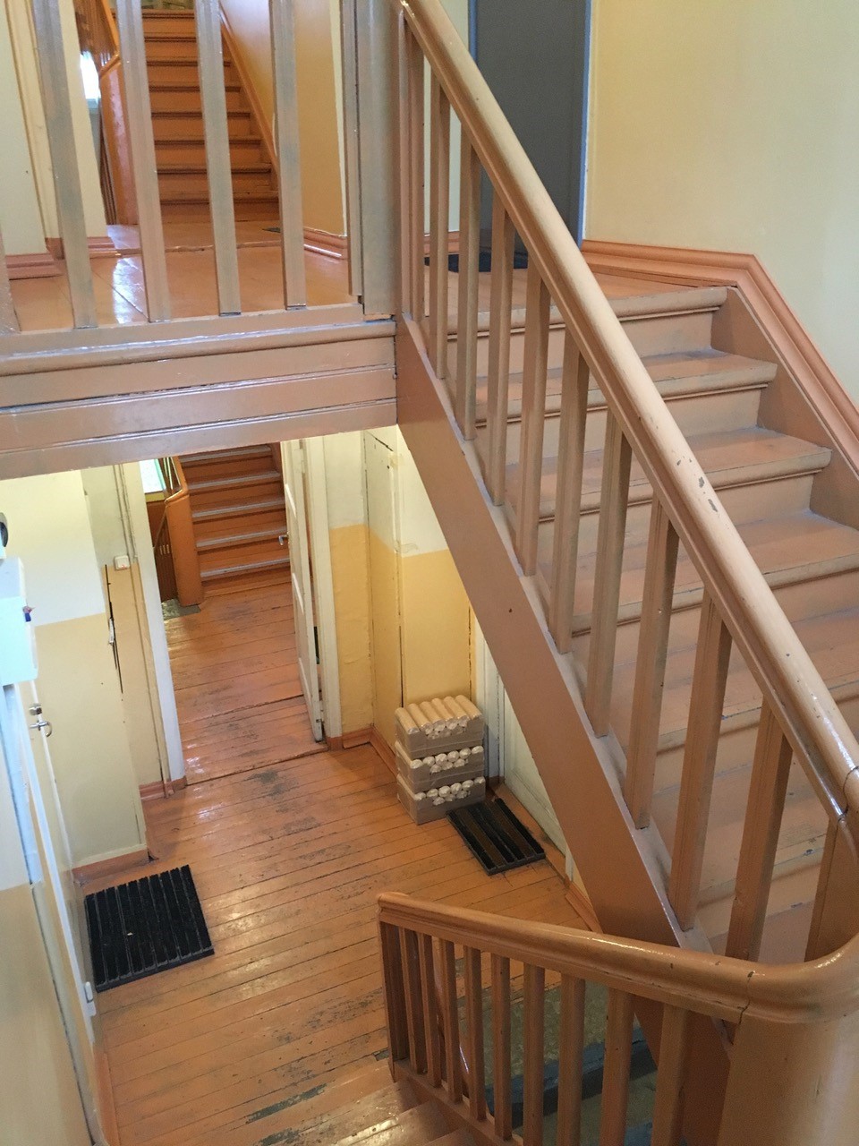 3. korruselises puitmajas on vaja trepp tulekindla värviga värvida. Esimese ja teise korruse vahel on 2 treppi, ning kolmandale korrusele viib 1 trepp.