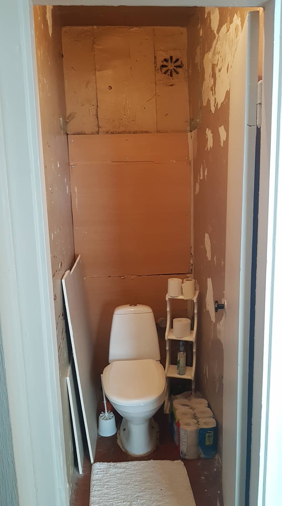 WC seinte tasandamine, tagumisse seina kipsplaat. Ventilatsioon.