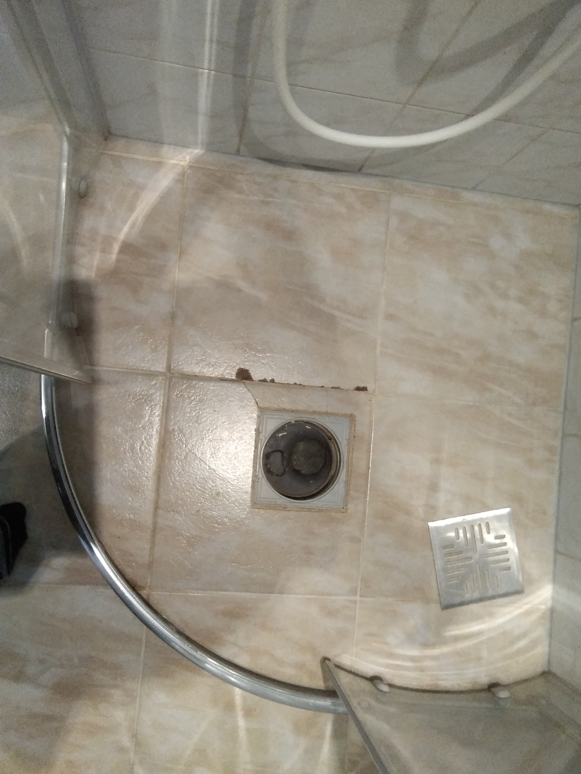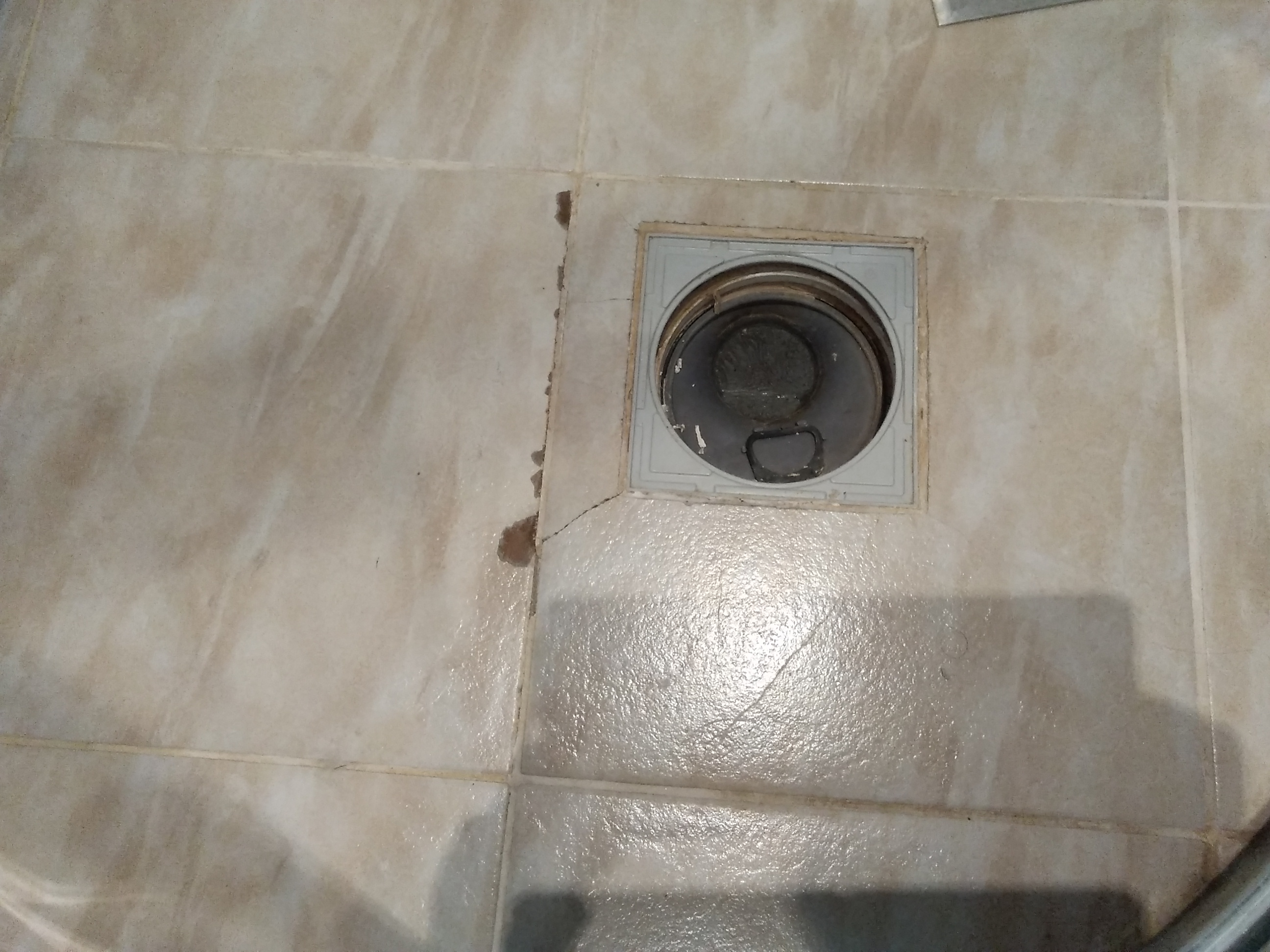 Põrandaplaadi vahetus trapi ümbert, hetkel plaat üles kummunud ja praguline.