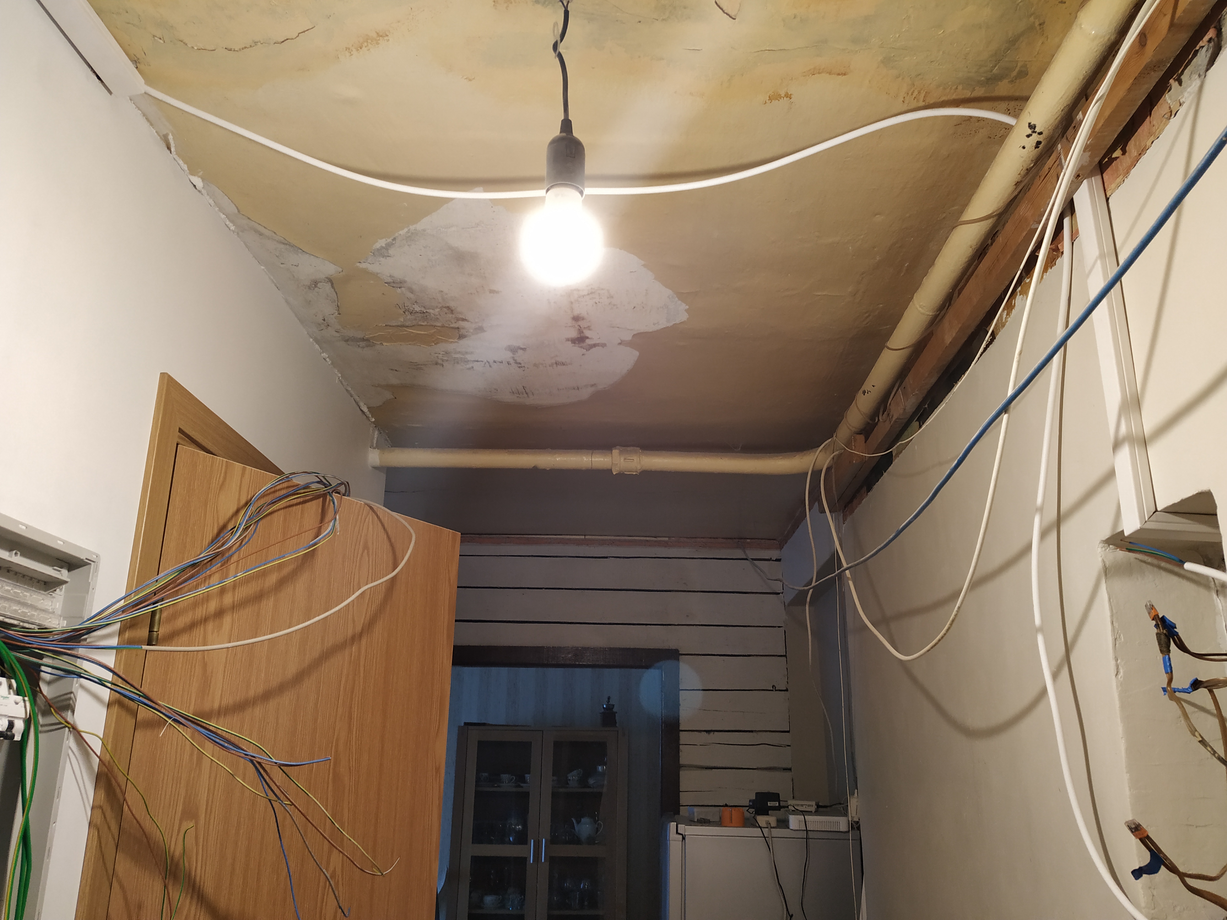 Esikus on osaliselt uus kipssein ja osaliselt värvitud sein. Laes juhtmestik ja torustik, mis tuleb lae paigaldusega ära peita. Põrandal linoleum. Köögis on tapeet, osaliselt keraamilised plaadid ja osaliselt uus kipssein. Põrandal linoleum ja lagi krohvitud, osaliselt lahtine. Elutoas tapeet, lagi lahtise krohviga, põrandal osaliselt linoleum. Toa ühes seinas kinni ehitatud süvend. Köögi ja elutoa vahel vahesein, mis on ehitatud nii puitlaudisega kui ka telliskividest.
