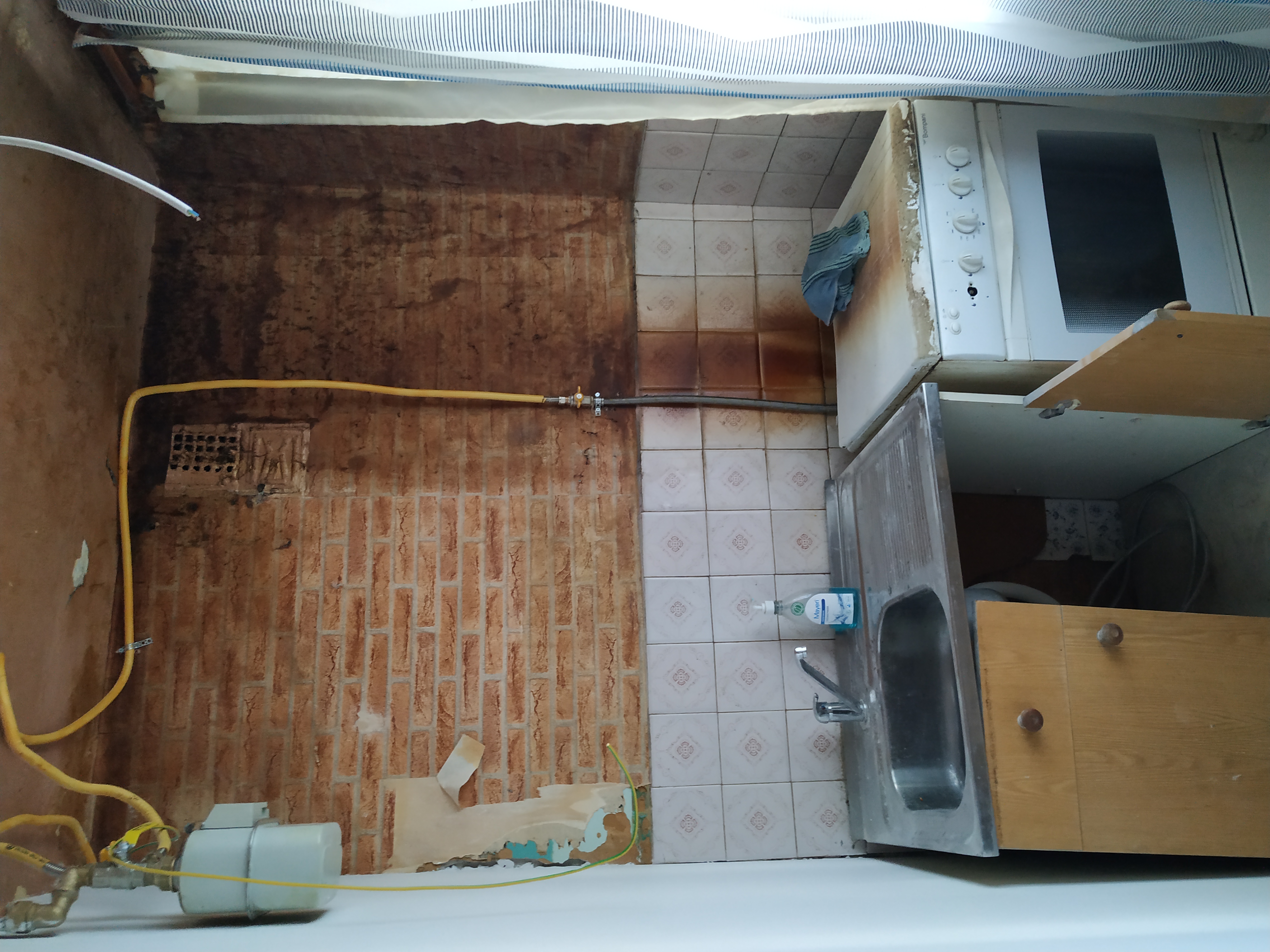Renoveerimist vajavad "hruštšovka" maja esimese korruse kahetoalises korteris esik (~6 m2), köök (~4,5 m2) ja elutuba (14,5 m2) ning välja tuleb lõhkuda vahesein köögi ja elutoa vahel.