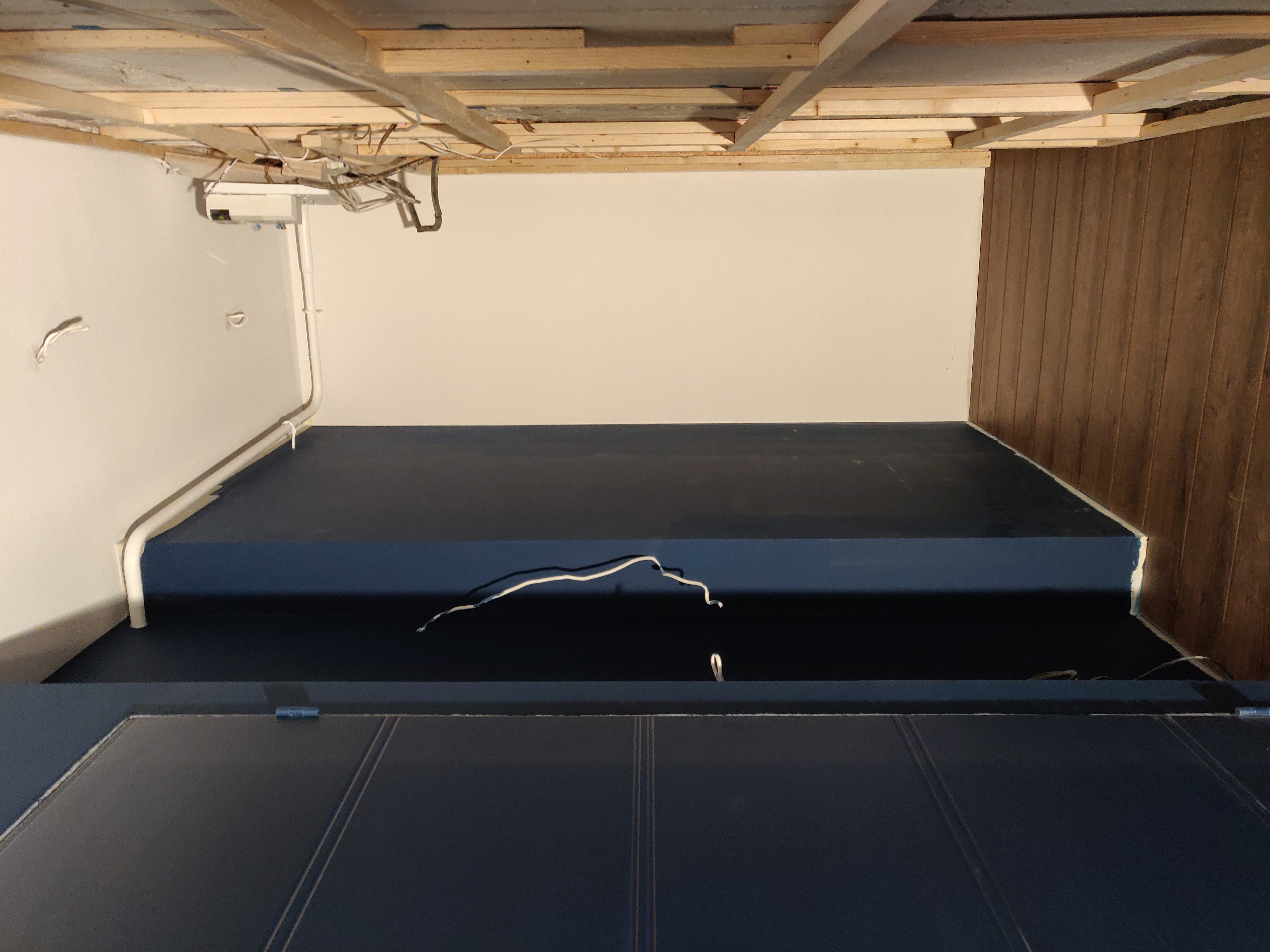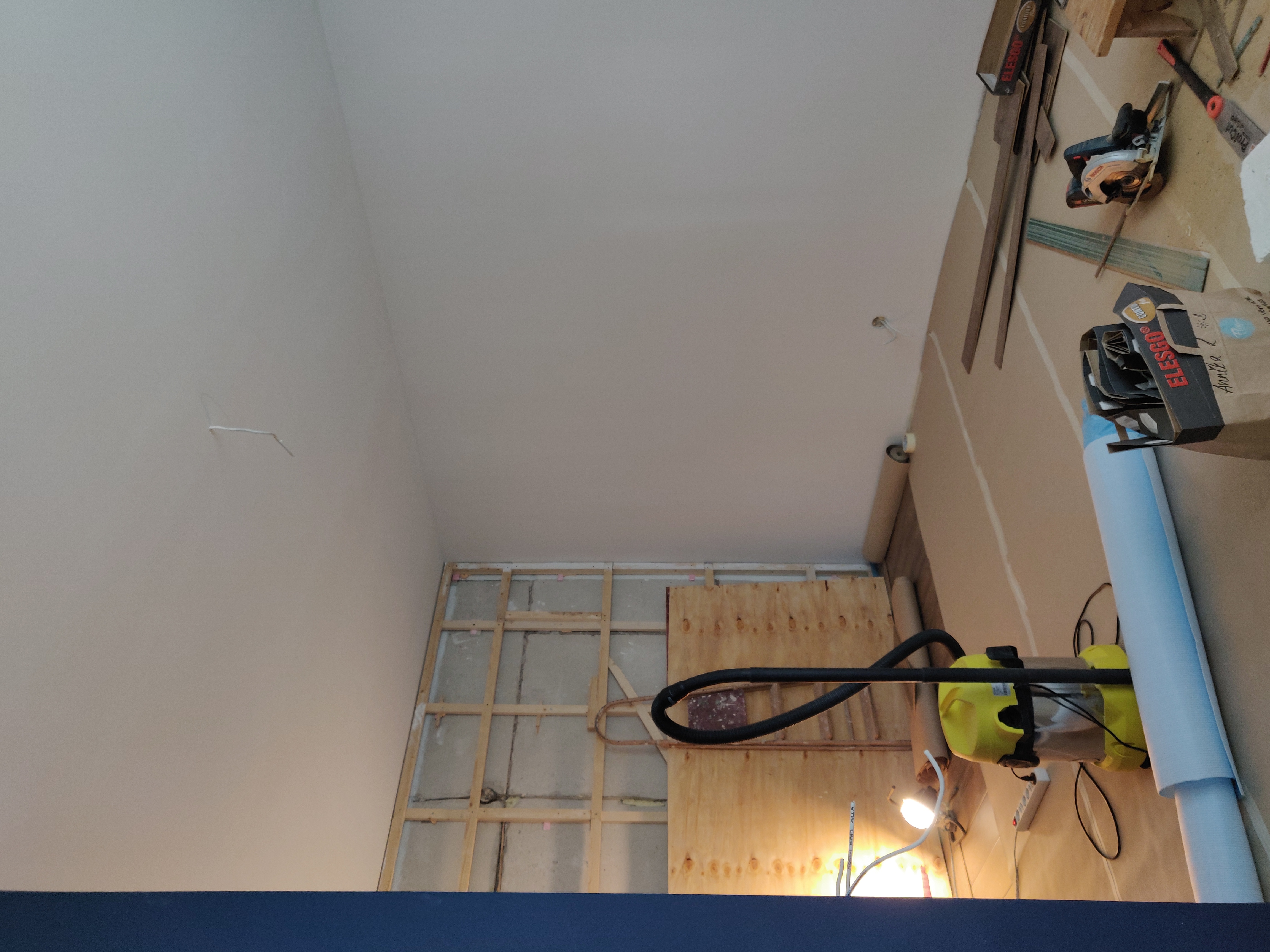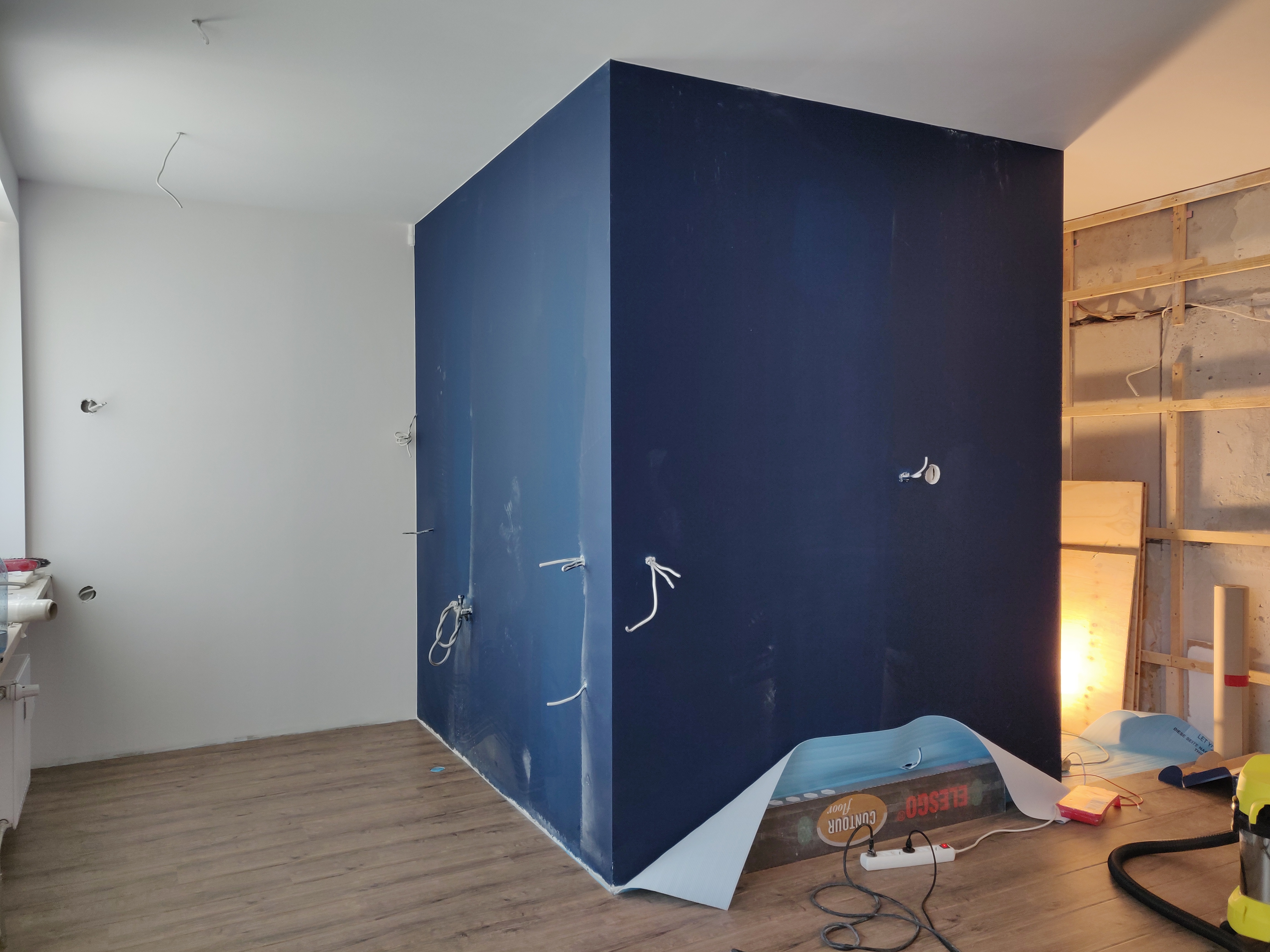 Remont on lõppjärgus, seinad ja lagi on paaril korral üle värvitud, kuid tulemus ebaühtlane. Pinnad vajavad viimast viimistluskihti.