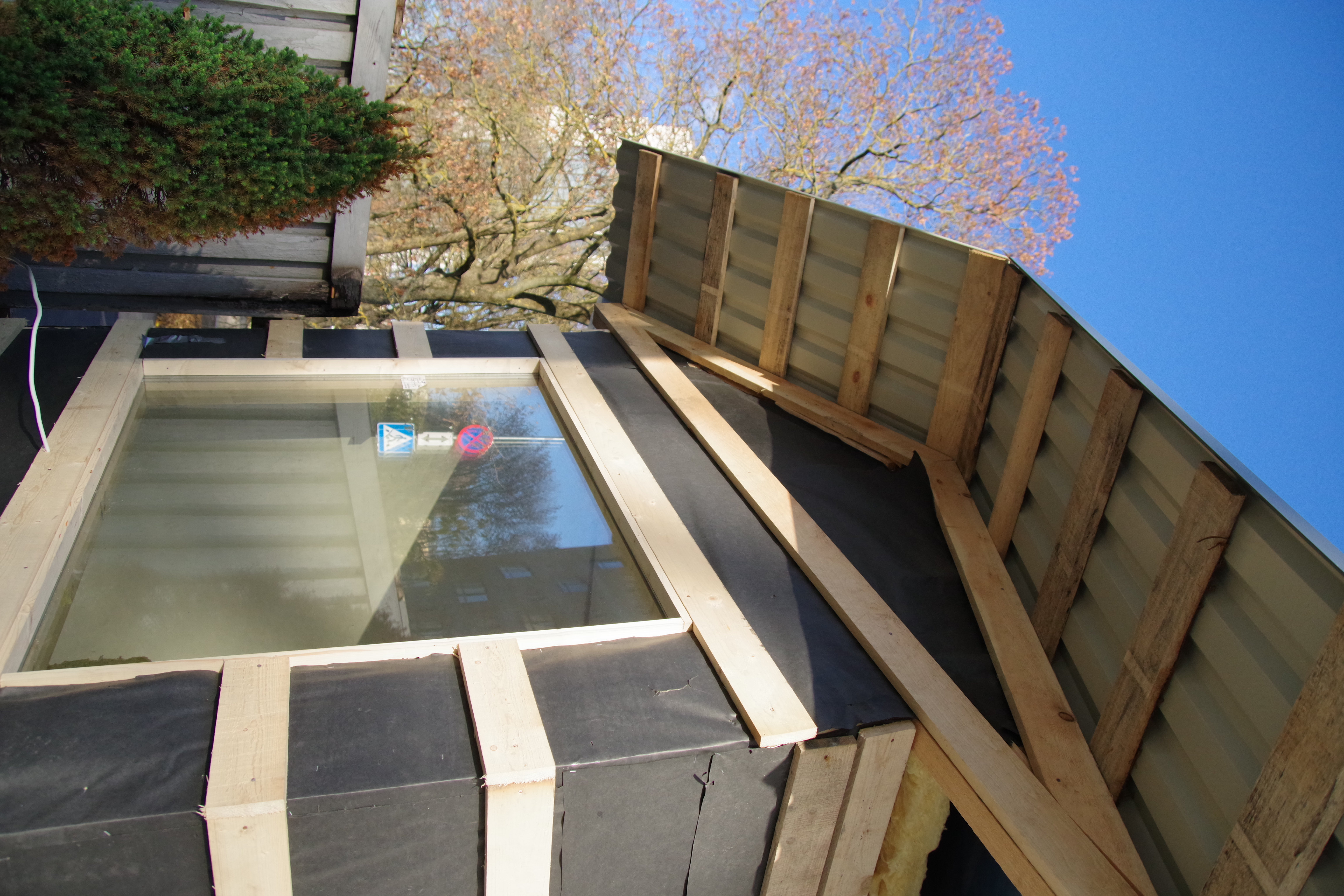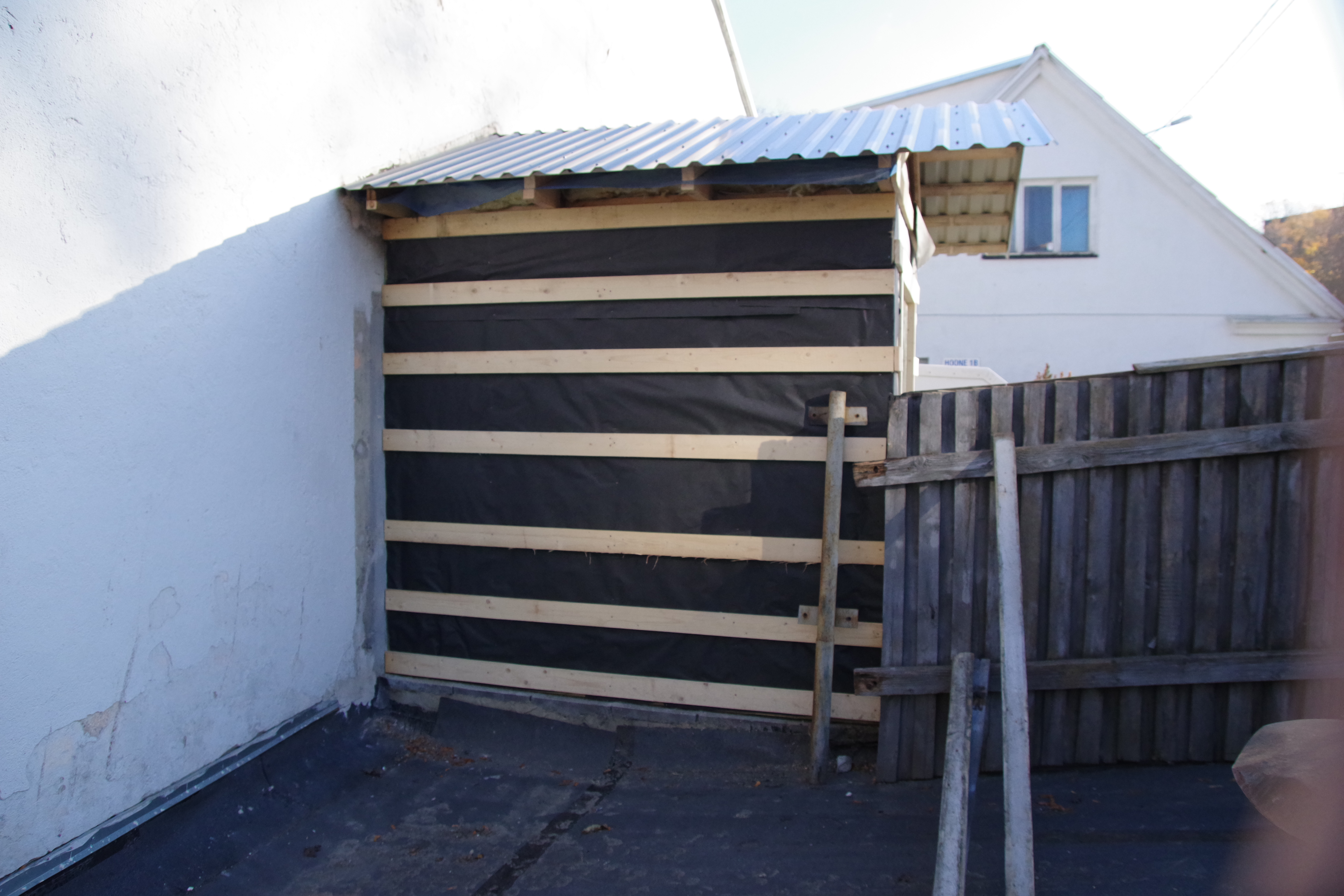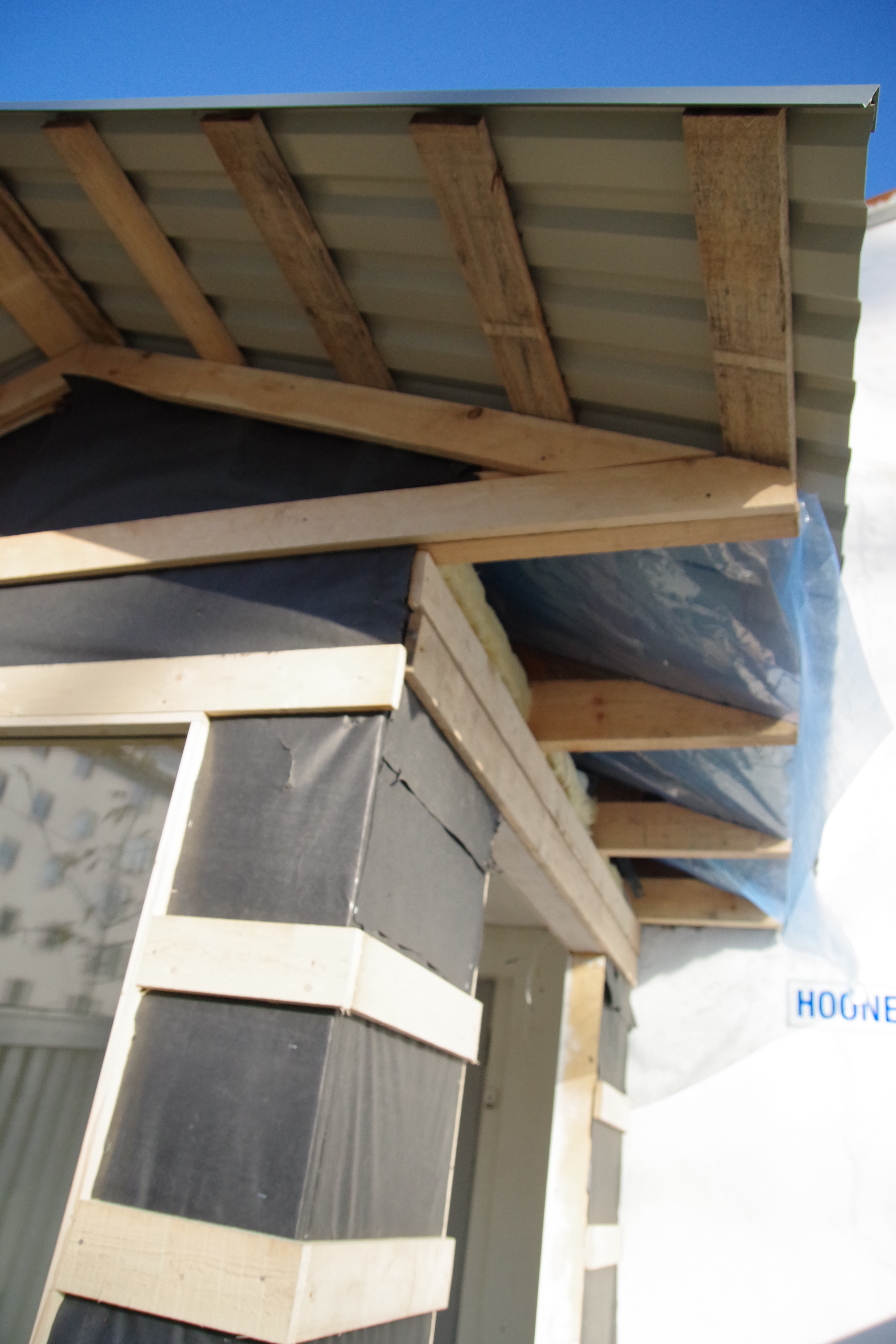 Tuulekoja seesmised plaadid ( Puitkiudplaat 16 mm lahti võtta) ning ära loodida. Akna poolne sein tuleb 25 mm paksusega plaadist ehitada. Kinnitusvahendiks tsingitud peitepea kruvid. Tuulekoja välis laudis samuti loodida. Tuulekoda kaetakse sileplekiga. See töö on vaja samuti teostada. Plekid, k.a. nurgaplekid on olemas.