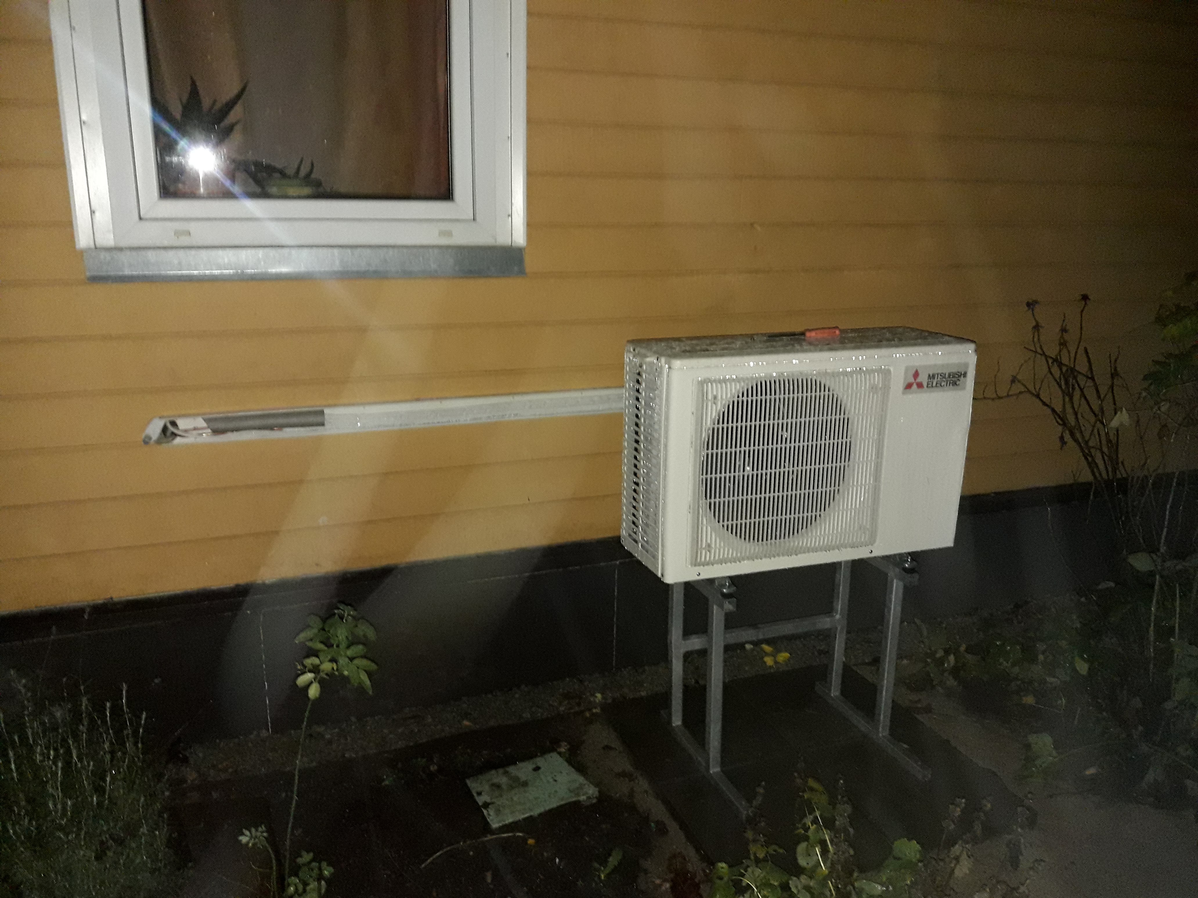 Sai paigaldatud maaraamile välisseade, siseseade tuppa, lühike torupaar vahele painutatud, eramaja 1. korrus. Vaja oleks valtsimist, ühendamist, vakumeerida/kontrollida ja siis kraanid avada. Elekter on veetud.