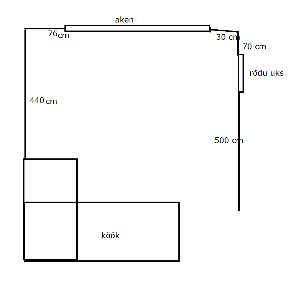 Põranda pindala on ca 50m2 (hetkel ei oska öelda seinate pindalat):