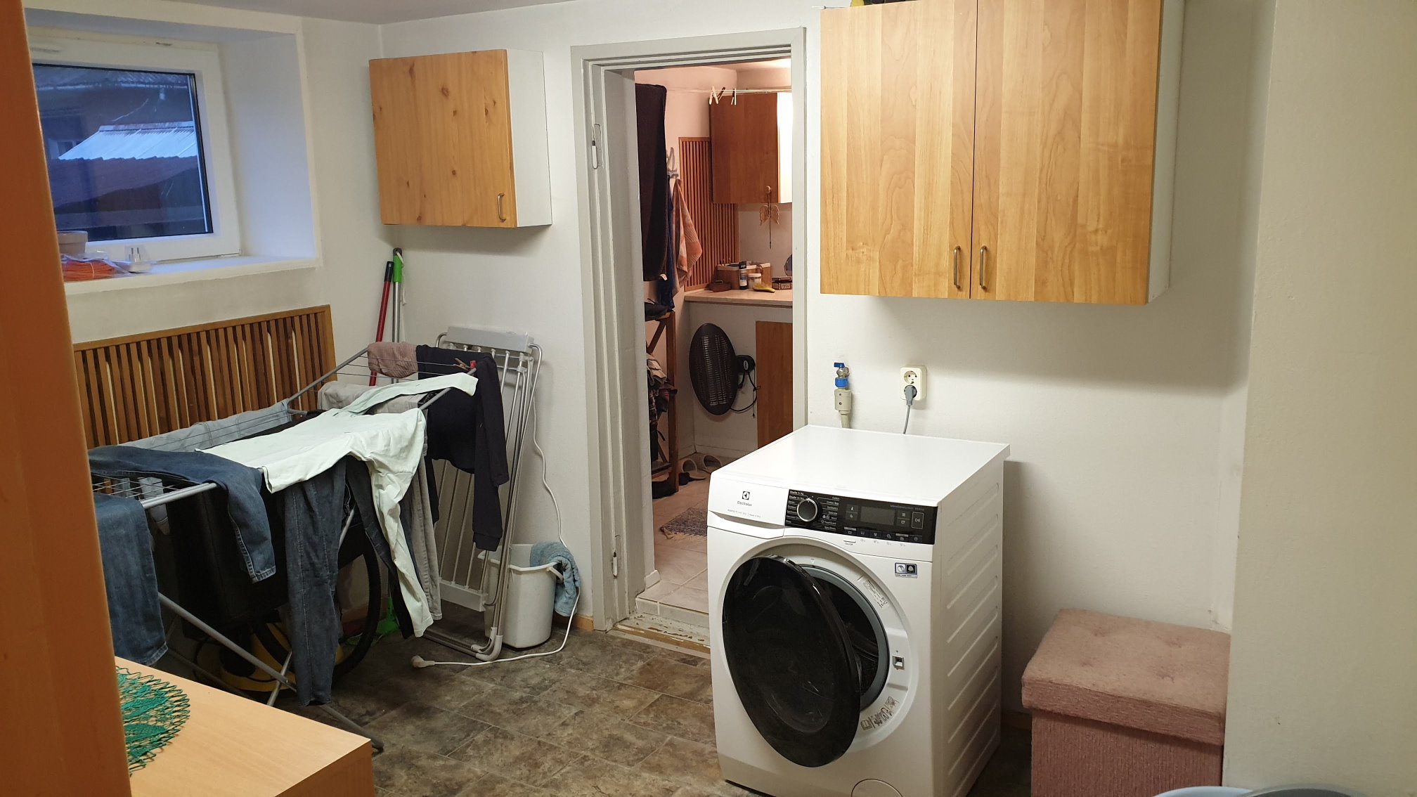 Koridori ja pesuala põranda alla on soov saada vesi-põrandakütet, selleks tuleb paigaldada uus kollektor ja tuua keldrist uus liin veetoruga (kelder jääb joonusel koridorist allapoole, liini pikkusel võib oma 10 lisameetriga arvestada. Lisada ka korralik veepump eraldi hinnareale (sest liin tuleb päris pikk).