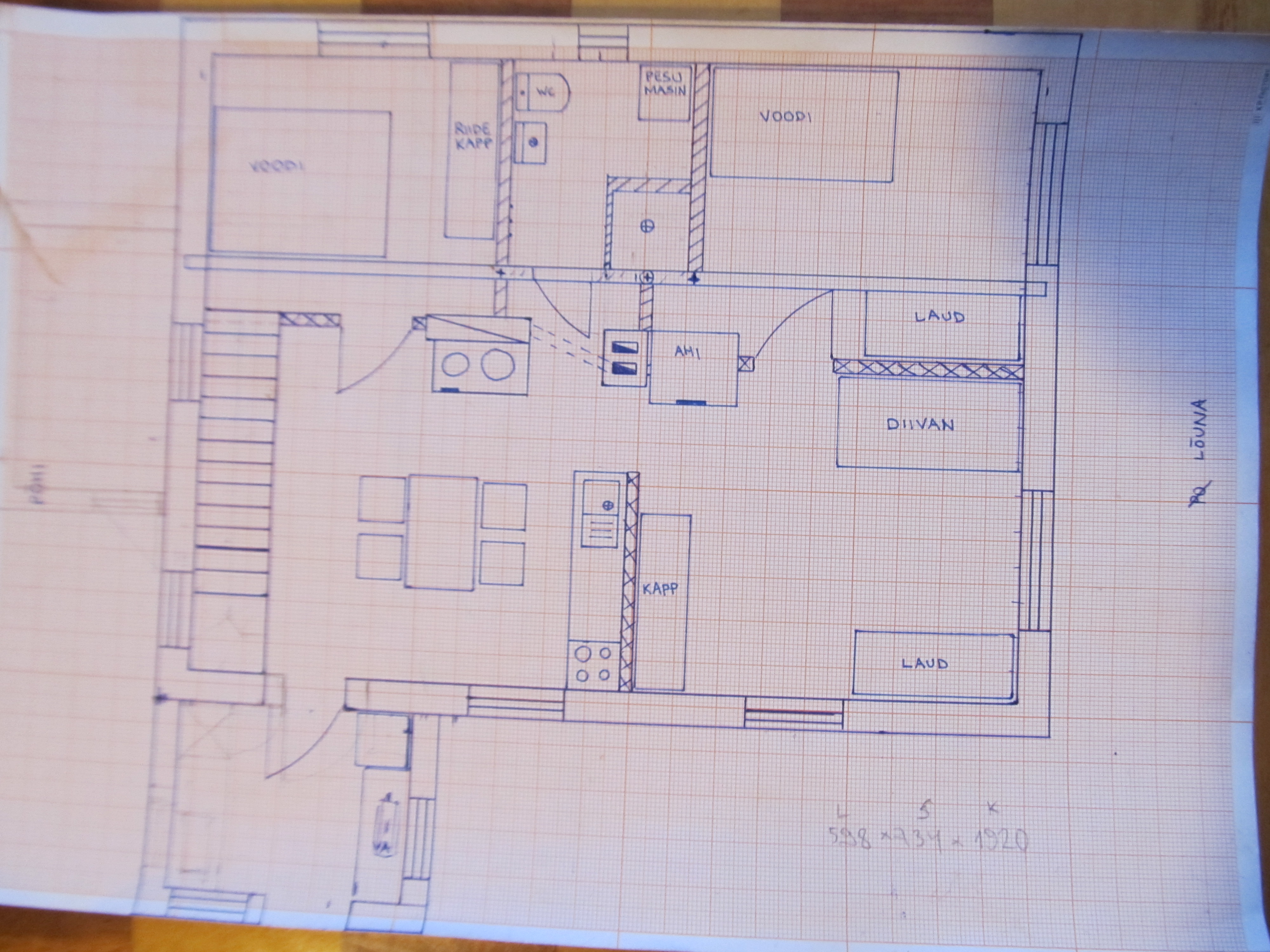 Vaja oleks projekteerida 72 m2 ehitusaluse pinnaga vana maja asemele uus. Vana oli 100% amortiseerunud ja on lammutatud. Vundament enamusjaolt olemas (ei ole tuulekoja ja koja jaoks) . Uus hoone tuleks Bauroc Ecotherm+375 plokkidest lihtne viilkatusega ristküliku kujuline 8x10,3m + tuulekoda + koda. Eskiis olemas. Vajalik ilmselt ka geoalus. Projekt võiks sisaldada juba ka veevarustuse osa, et ei oleks vajalik eraldi projekti kaevule/septikule.