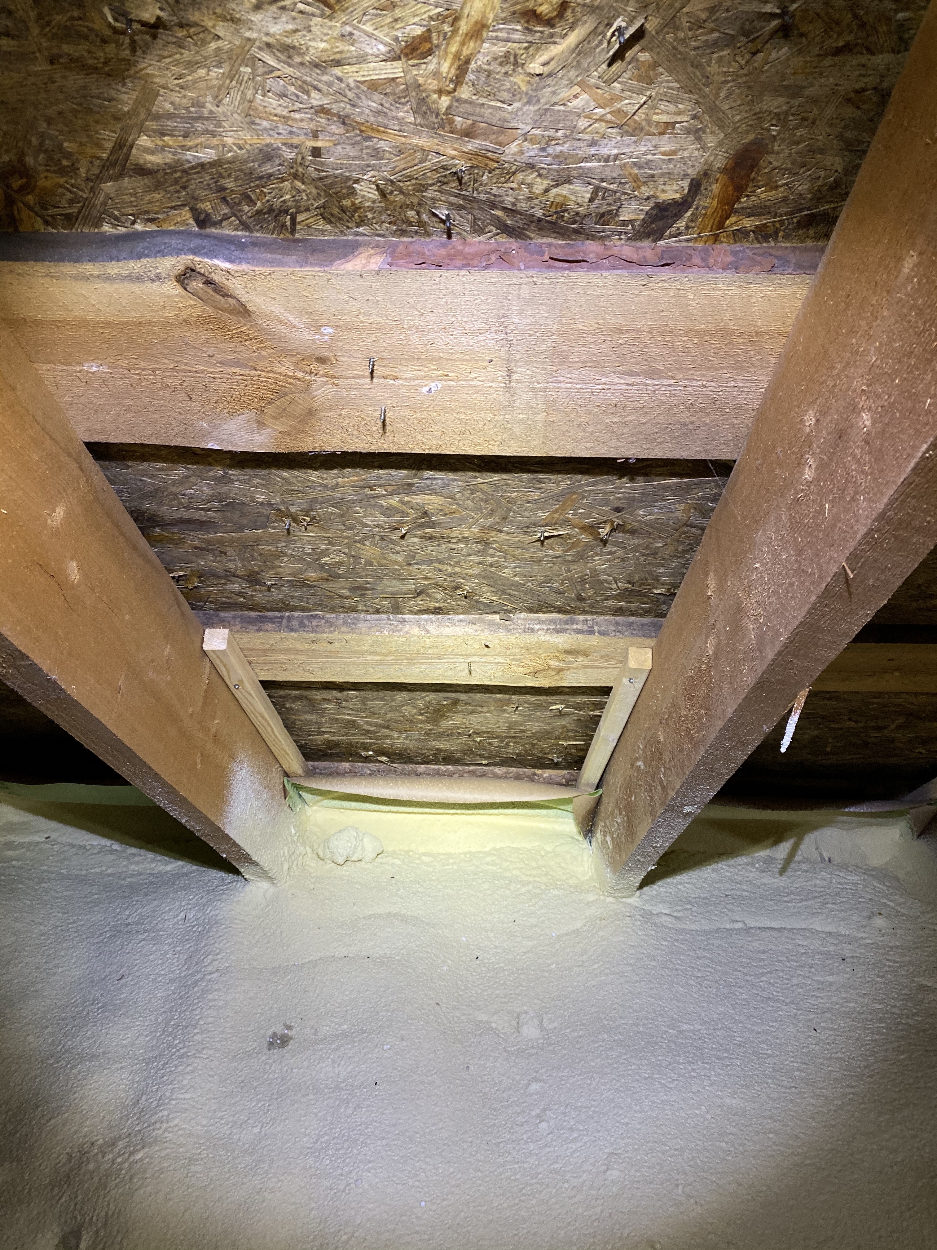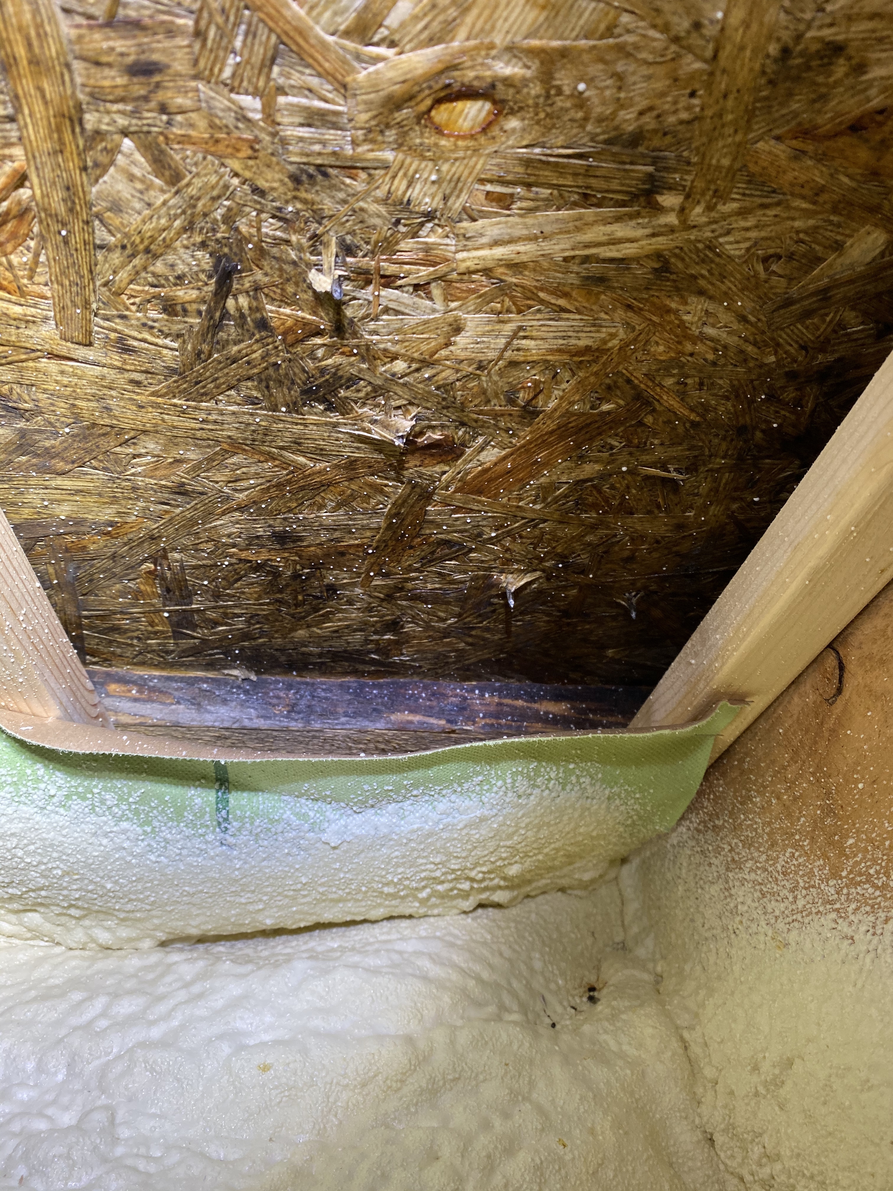 Hetkel katusel icopal bituumensindel, mis on löödud osb (10mm) peale. jäetud tuulutusvahe, mille järel siis 100-120 peno (täpselt ei tea, ei vasta olemasolevale maja projektile), seejärel peaks olema aurutõkkena kile (pole kindel, et on).
