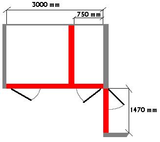 Esialgu on kiire joonisel oleva 1470 mm seina ehitus. Hiljem lisanduvad teised seinad ka, mis joonisel punasega märgitud.