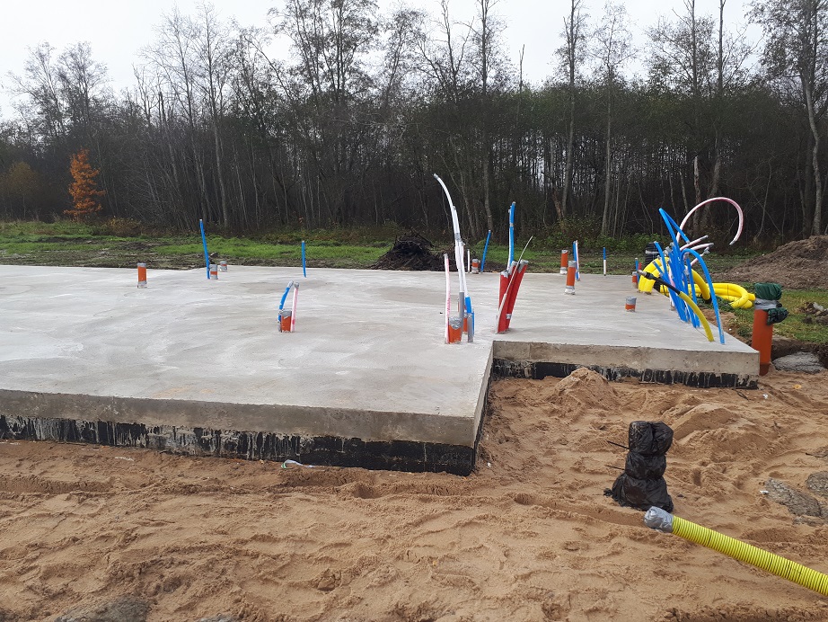Olemas 2019 aastal valminud vundament koos esimese korruse kommunikatsioonidega (kanal, vesi, kõrid elektri ja maakütte jaoks).