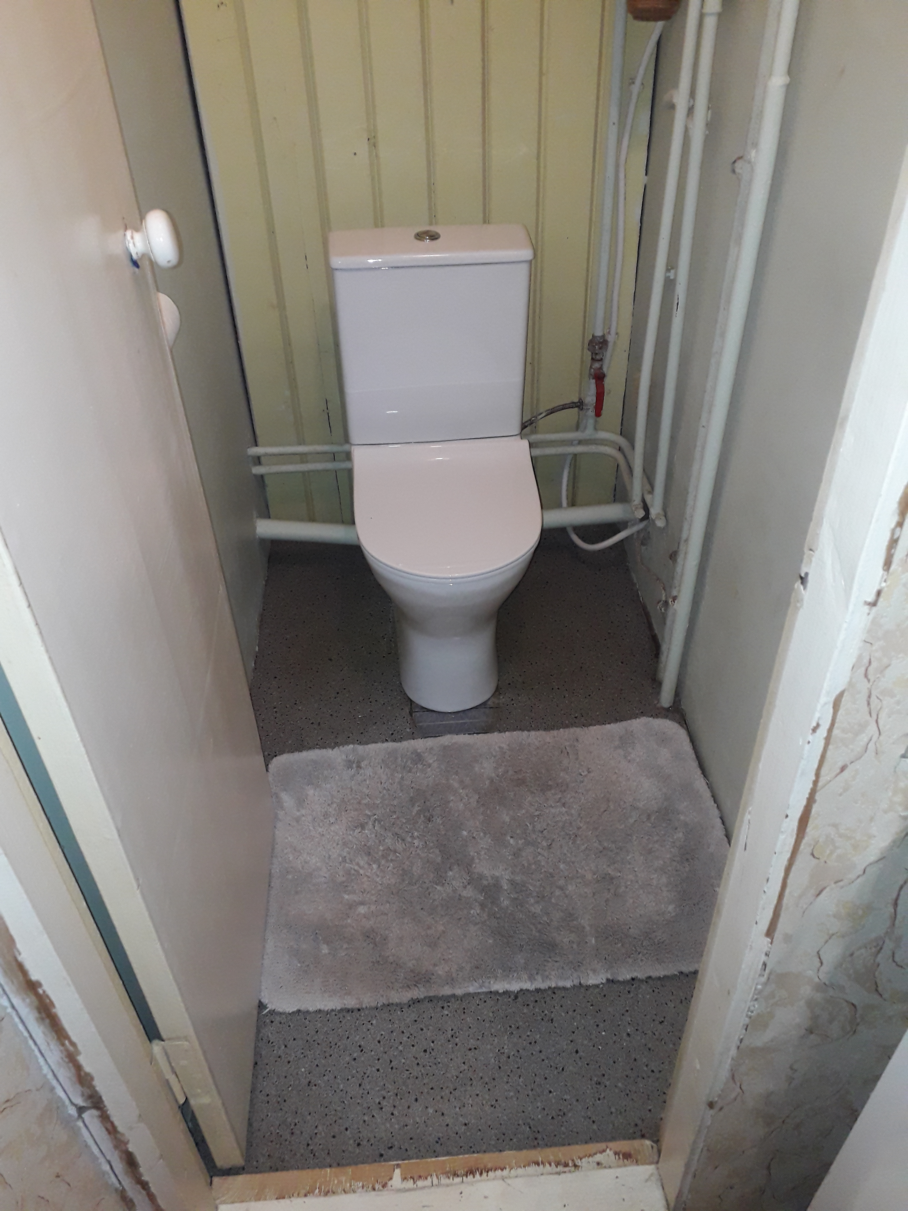 Vaja põrandale tasandussegu ja plaatida,wc pott uus aga kinnitamata,vaja eemaldada ka vana malmist ühendusrist ja asendada plastik,ühendada olemasolev pott ja kinnitada.Vana põranda eemaldan ise!