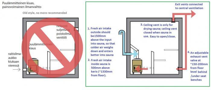 - puurauk tuleb teha nurga all, nii et torus olev kondensatsioonivesi voolab sauna poole (sauna põrandale)