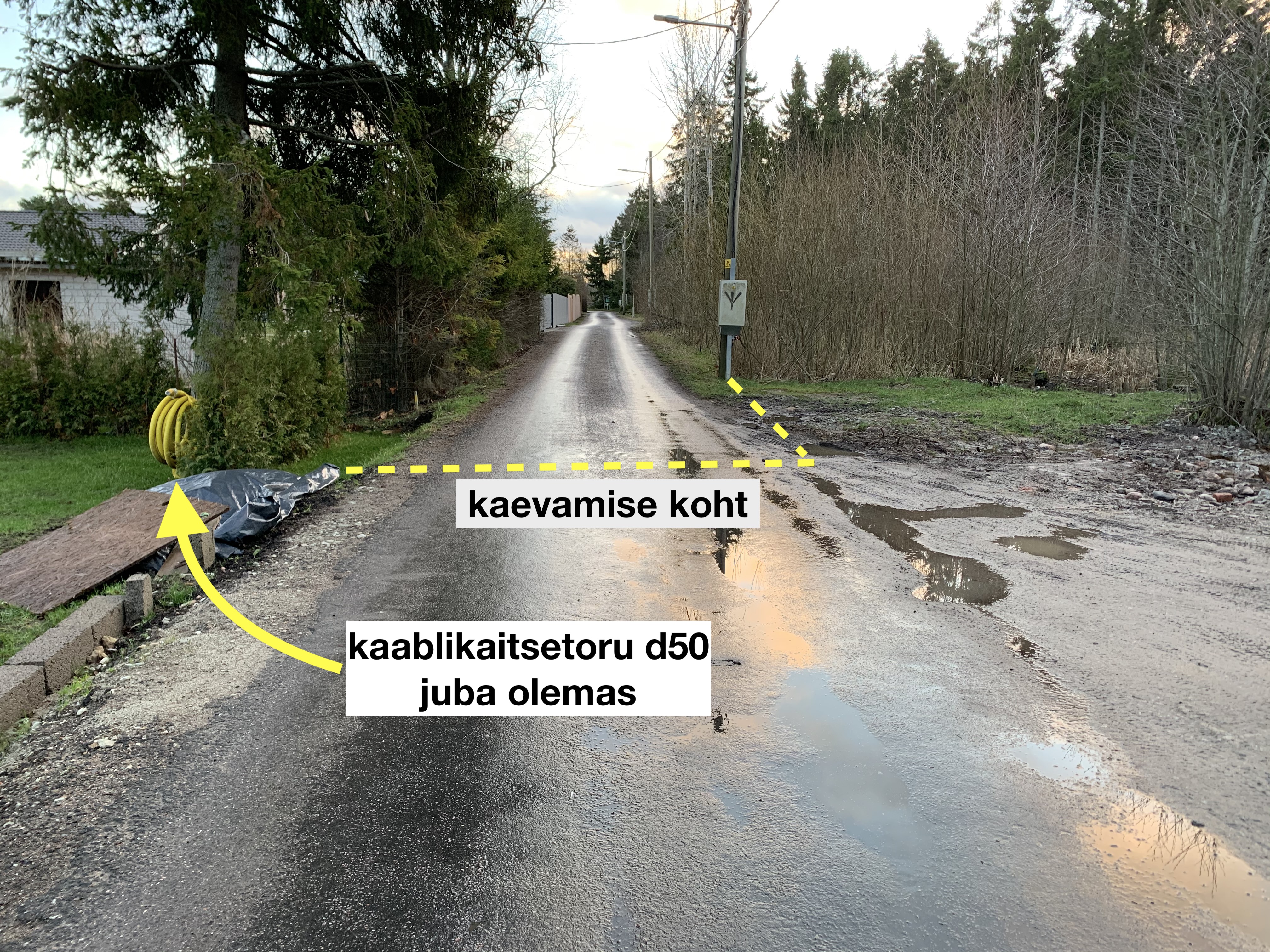 Krundi piirinl kaablikaitsetoru d50 majast juba olemas.