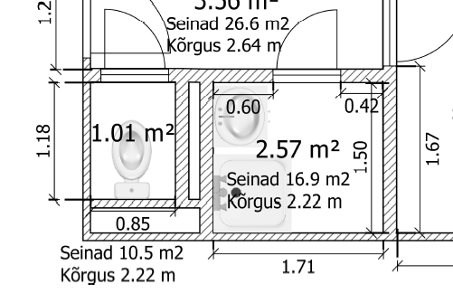 Vannitoa (2,6 m2) ja wc (1 m2) kapitaalremont - kõigi seinte ja põranda plaatimine, lagede pahteldamine ning värvimine, uute vaheuste paigaldus.