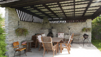 Sooviks grillinurka koos kaminaga ja kivist põrandaga (üheltpoolt saetud või hööveldatud paas või tänavakivi). Mõõdud ca. 5x3m, paekivi seina kõrgus 2m.