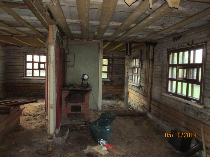 Kuna palkamaja vundamendil on kaks nurka ära vajanud on vaja tõsta maja üles, vahetada alumine palk, või osa sellest, asendada prussiga Valada kogu vundamendile peale kiht 7-10 cm ( vundamendi laius on 30cm).Maja mõõdud on 11m * 7m. Maja on ehitatud tahutud palgist 60ndatel aastatel.Hetkel maja seest tühjaks tehtud.Tõstmisel on kindlasti vaja keskmisest enam palke kindlustada, kuna ehitusel on taaskasutatud palkmaterjali.