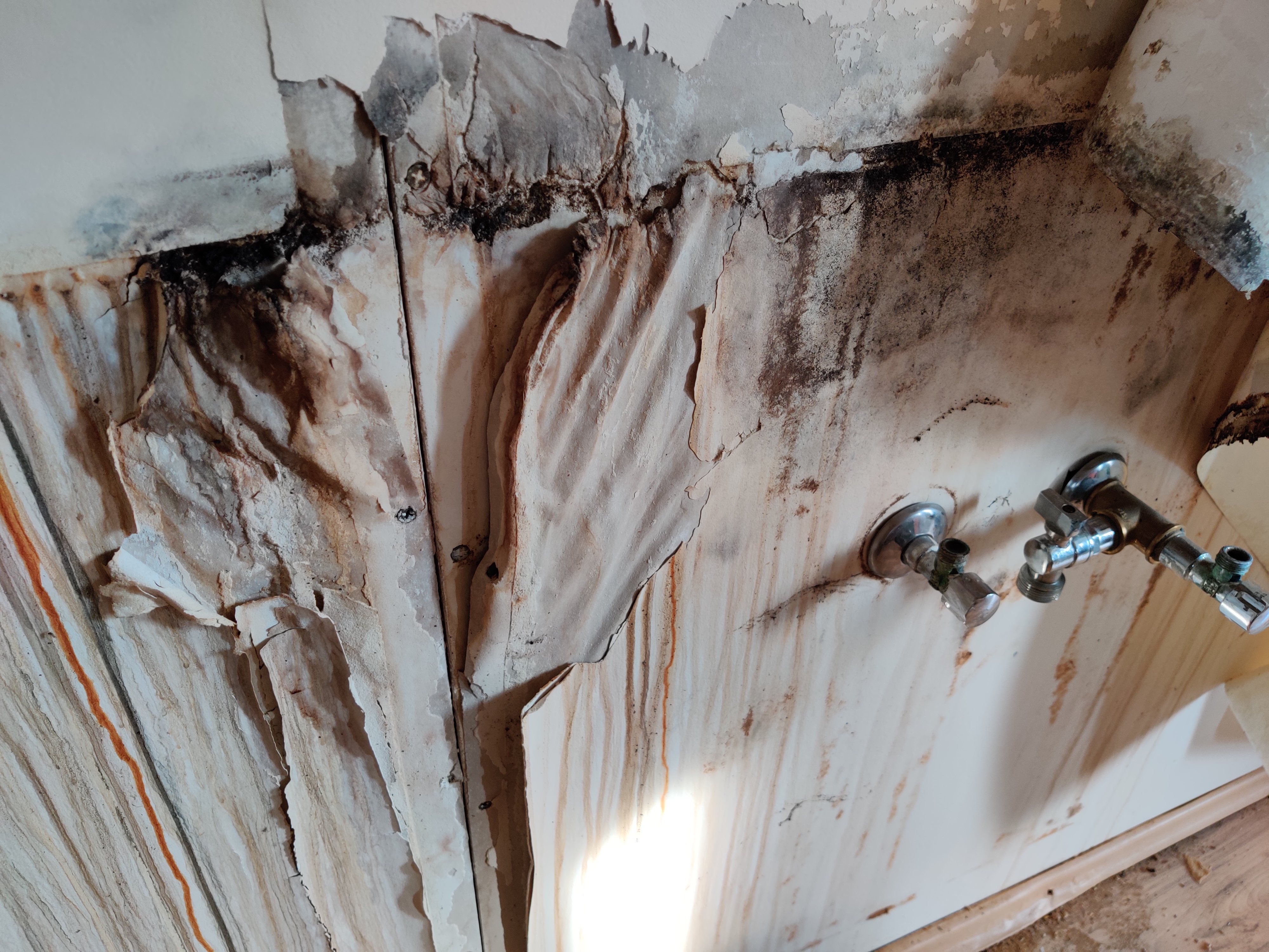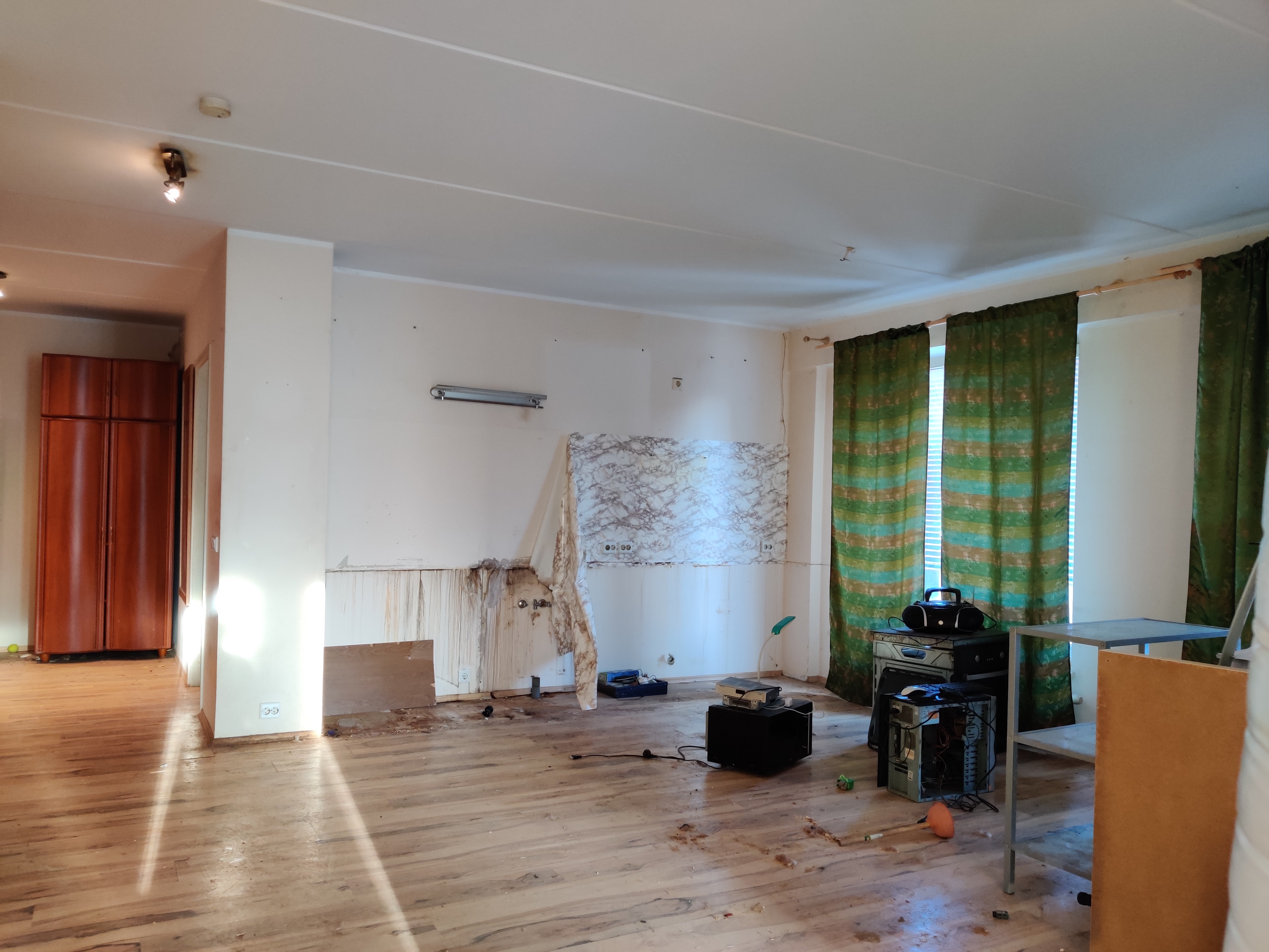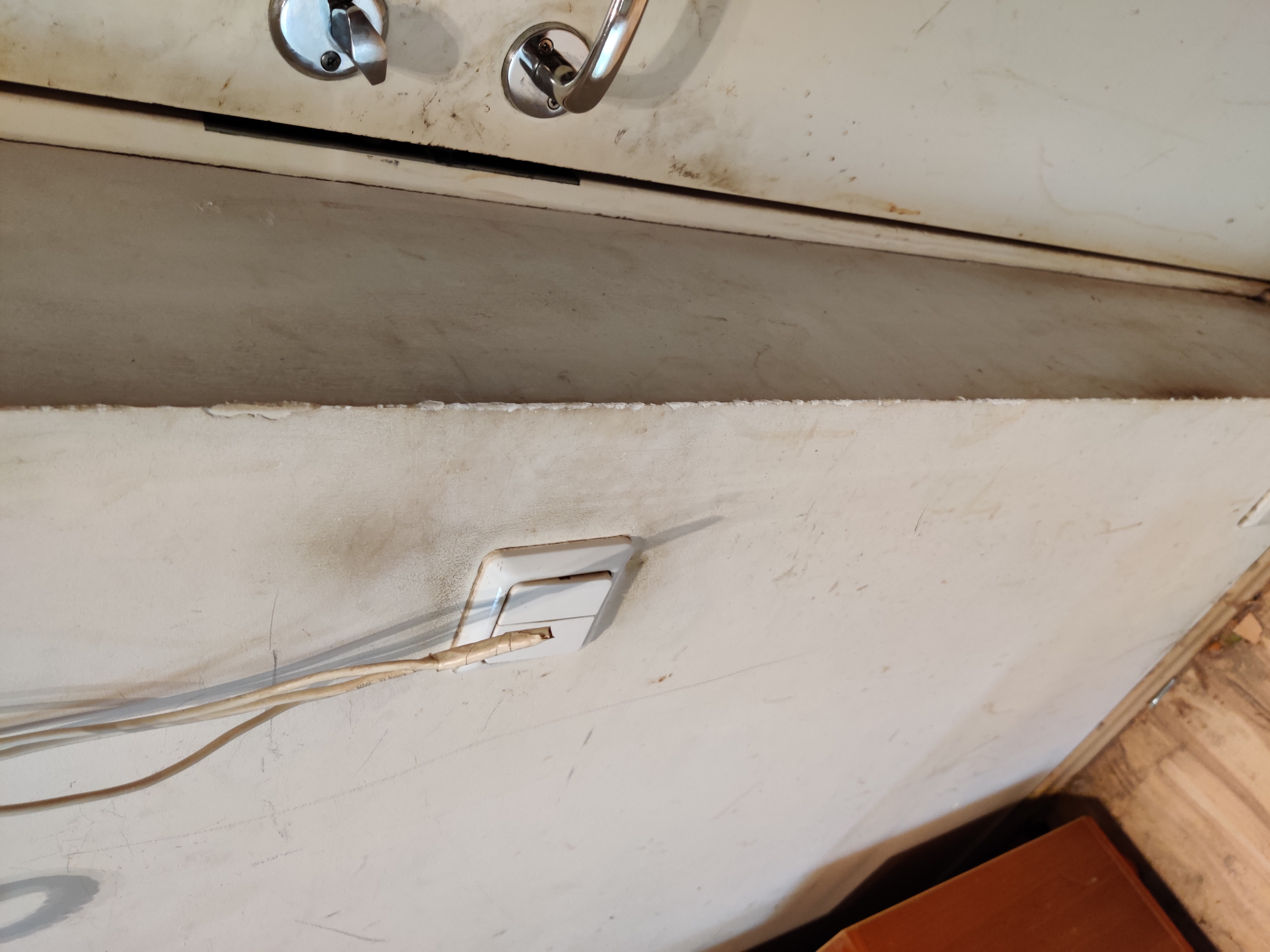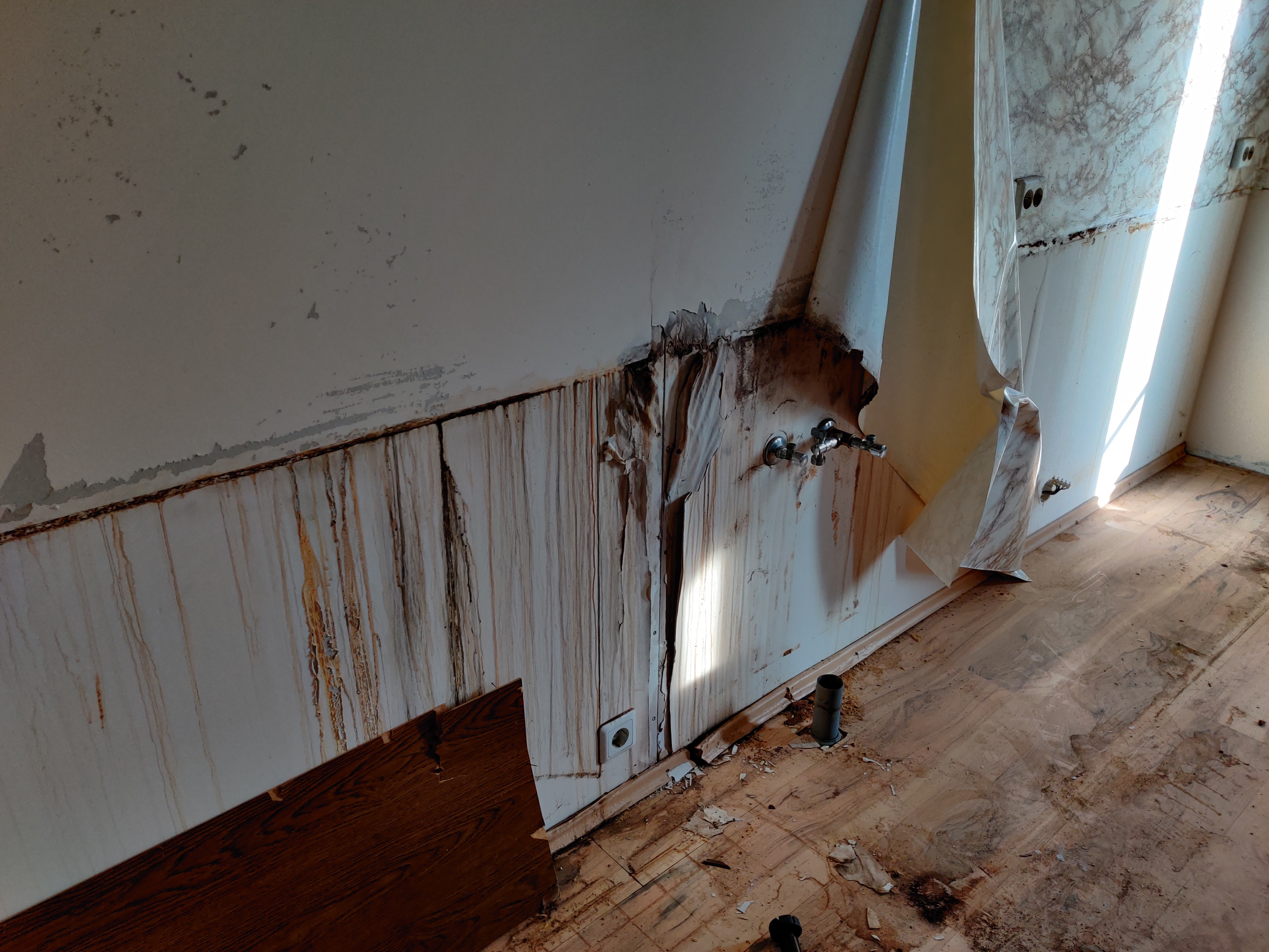1. köögi seinas olev kipsi alumine osa vajadusel vahetada, viimistleda (niiskuskahjustused, kipsipaber ära tulnud, ilmselt pahtel peale ei jää?)