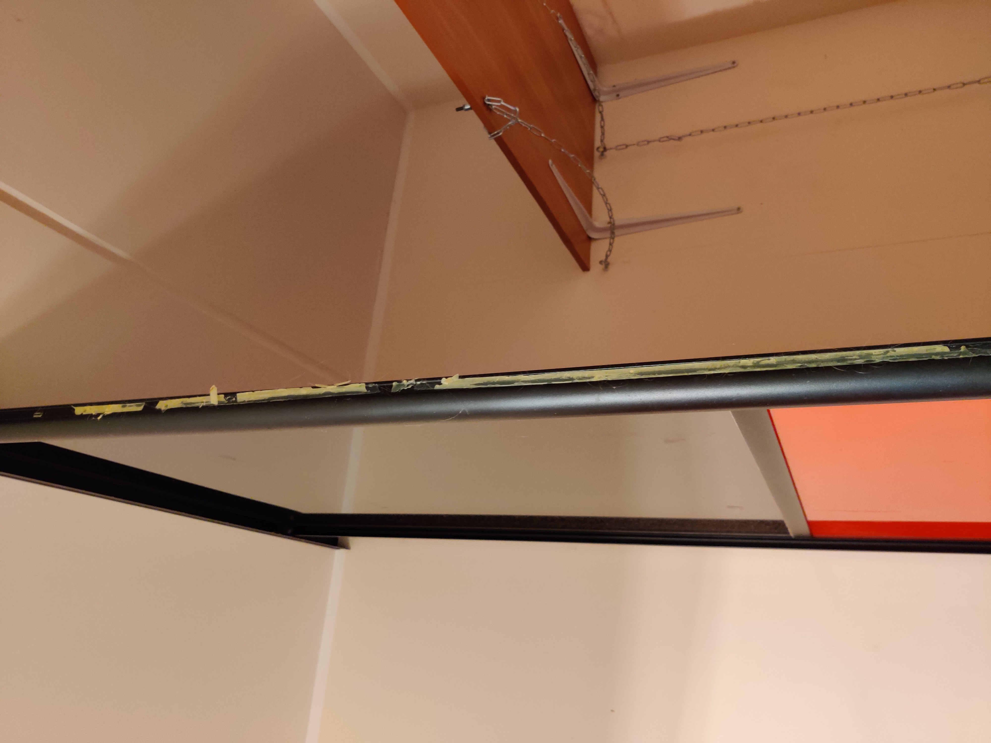 1. ühele liugukse servale paigaldada uus pehme riba, vanast liimist eelnevalt puhastada (vt pilti)