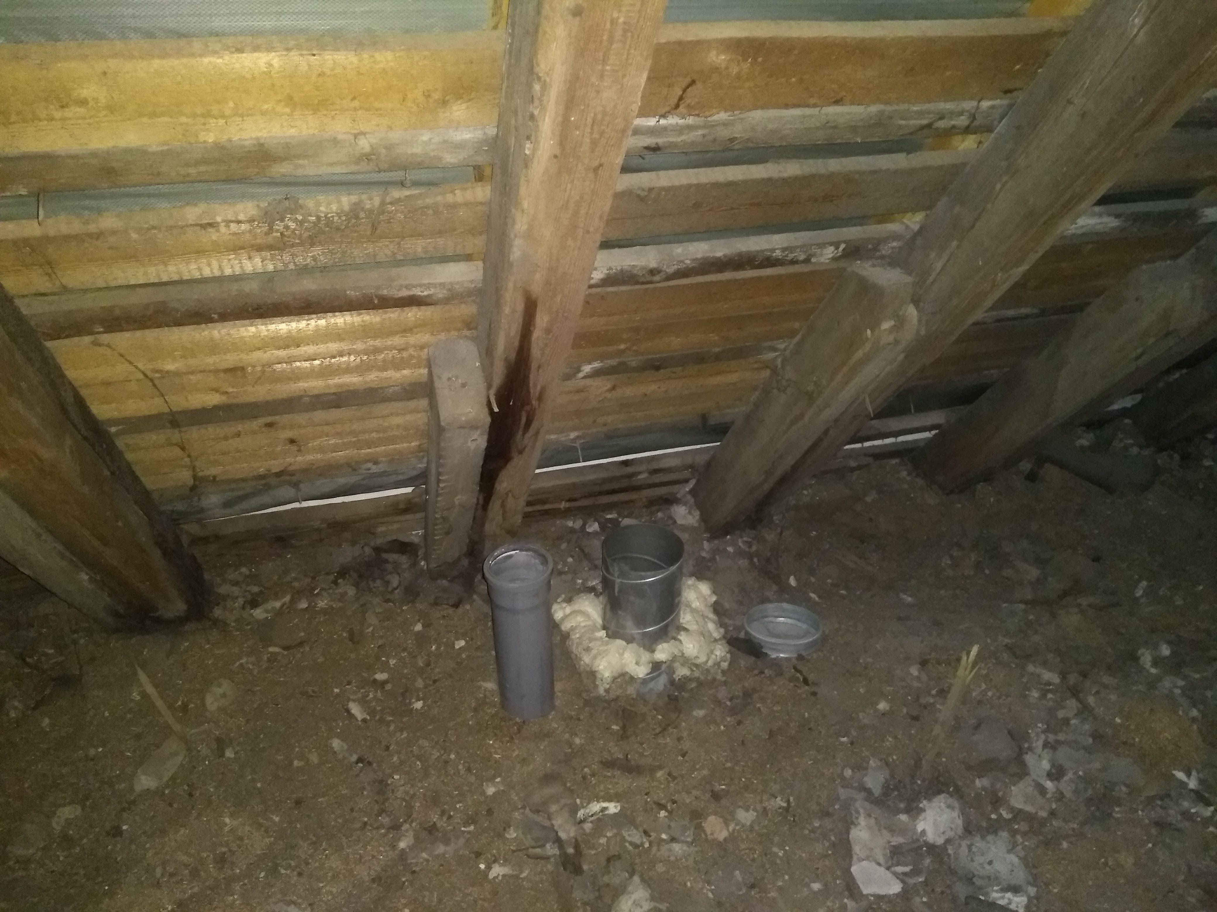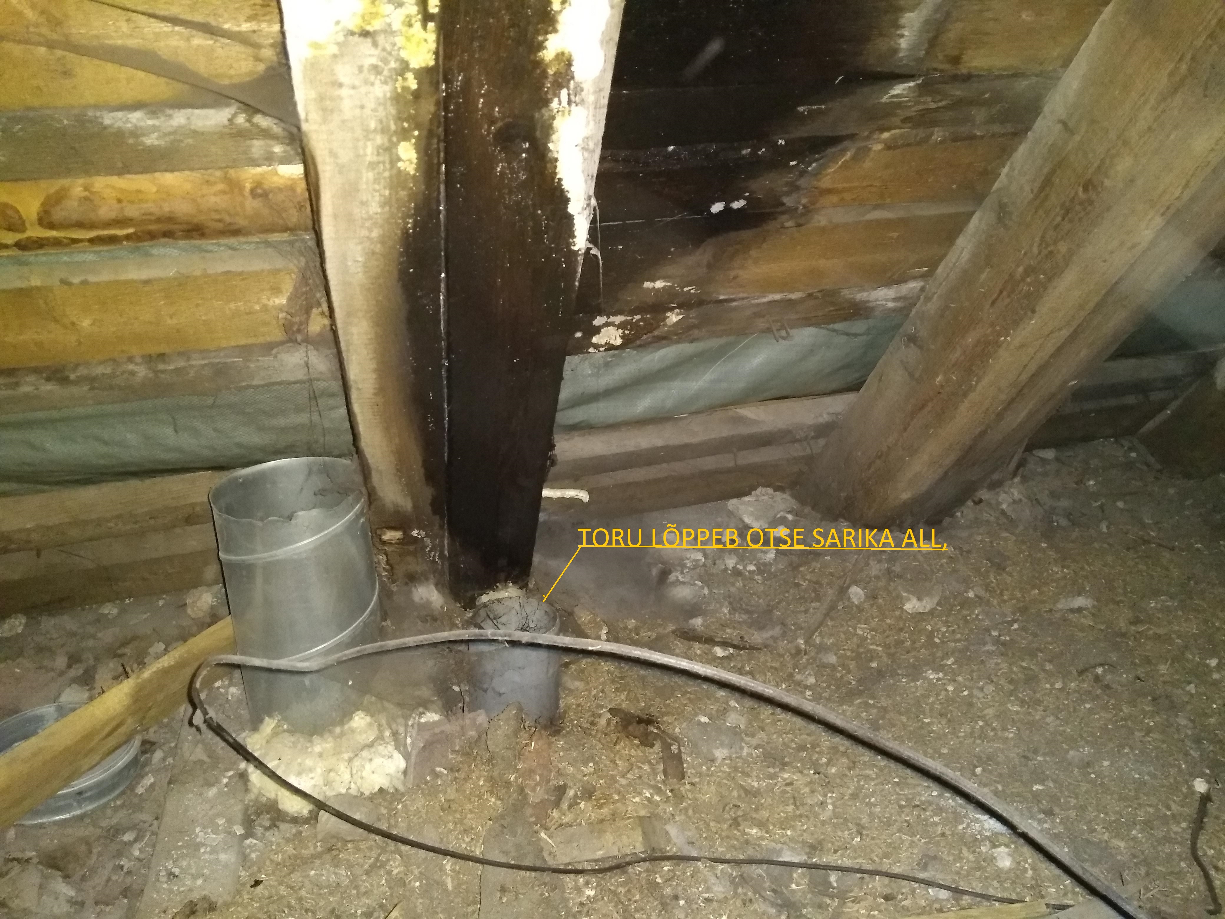 Ventilatsiooni läbiviigud plekk-katusest (vähemalt 2). Sealjuures peab arvestama, et torud peavad väljas jääma samale joonele (Pööningul nad seda ei ole). Kuna tegemist on mitme korteri ventilatsiooniga tuleb paigaldada tuletõkke mansett?