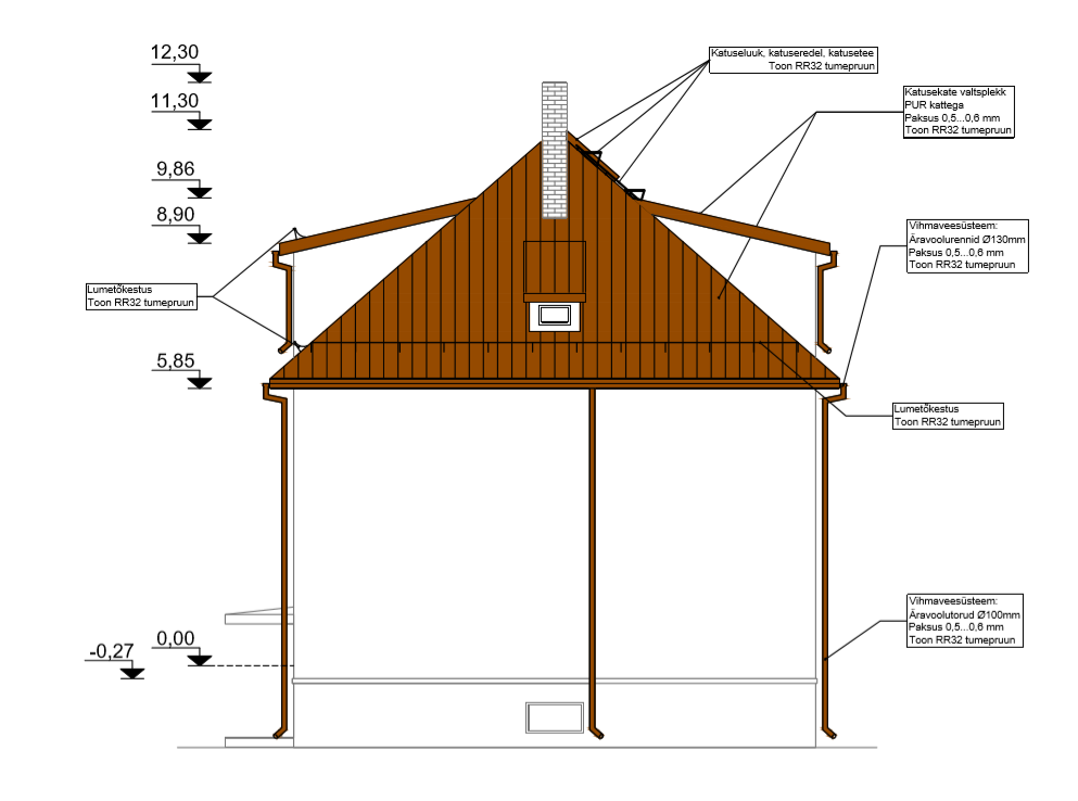 6) PUR-kattega valtsplekk katus, katuseluuk, katusesild, katuseredel, 160mm ventilatsioonikorsten