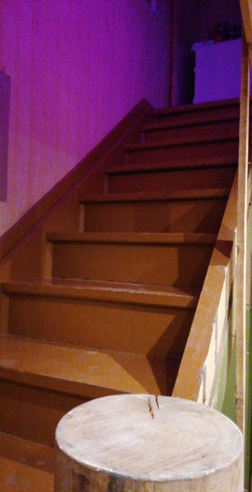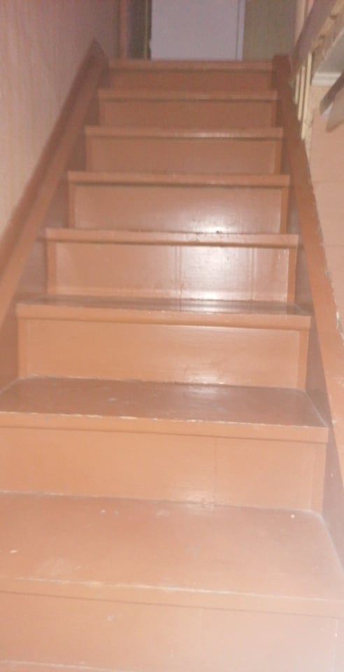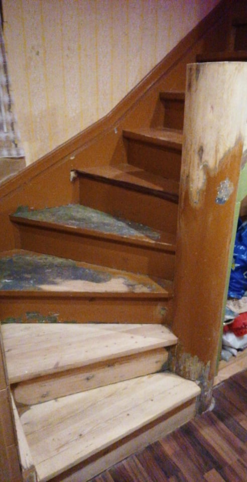 Vana nõuka aegse värvi eemaldamine trepilt, kuni naturaalse puiduni.