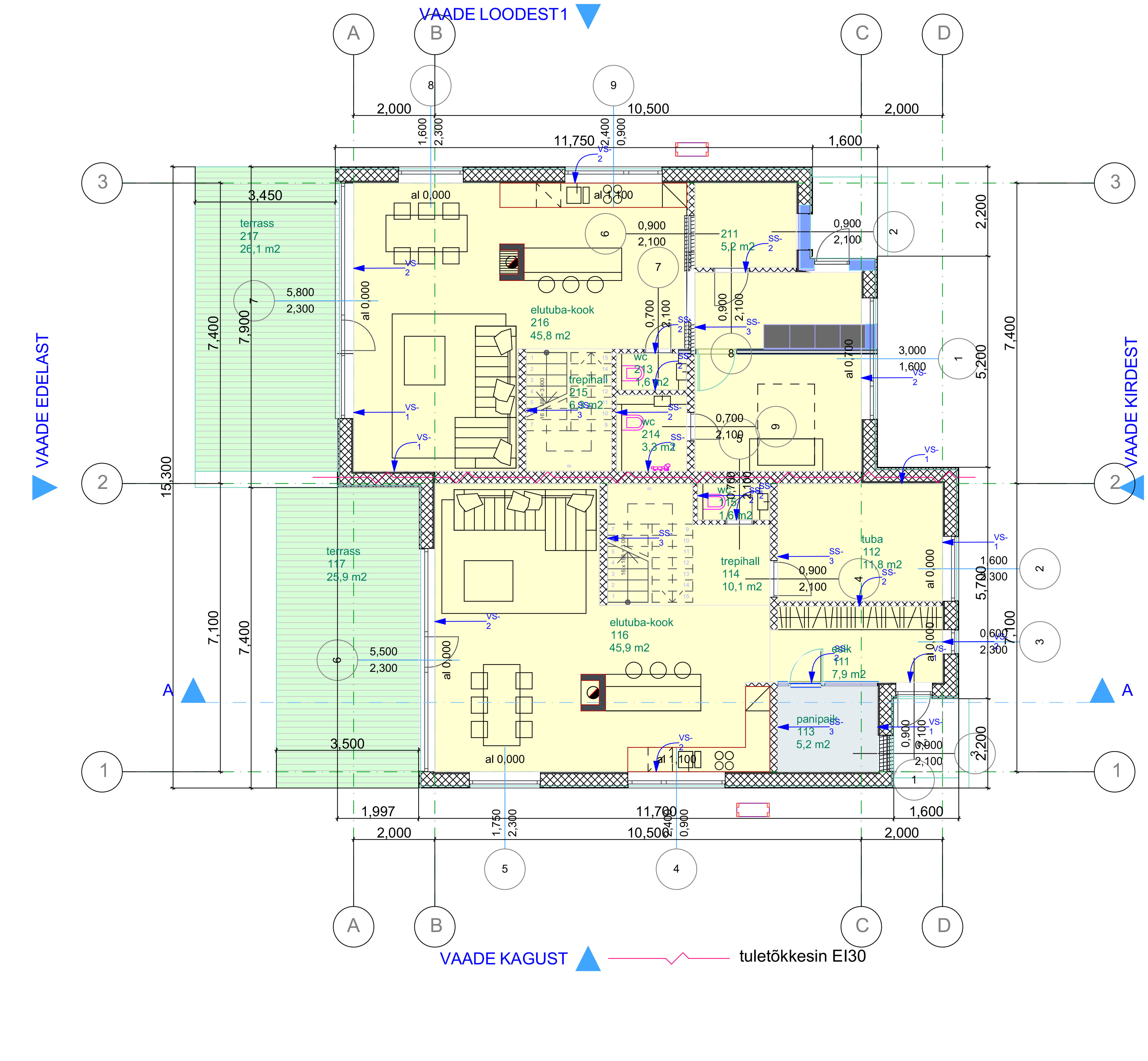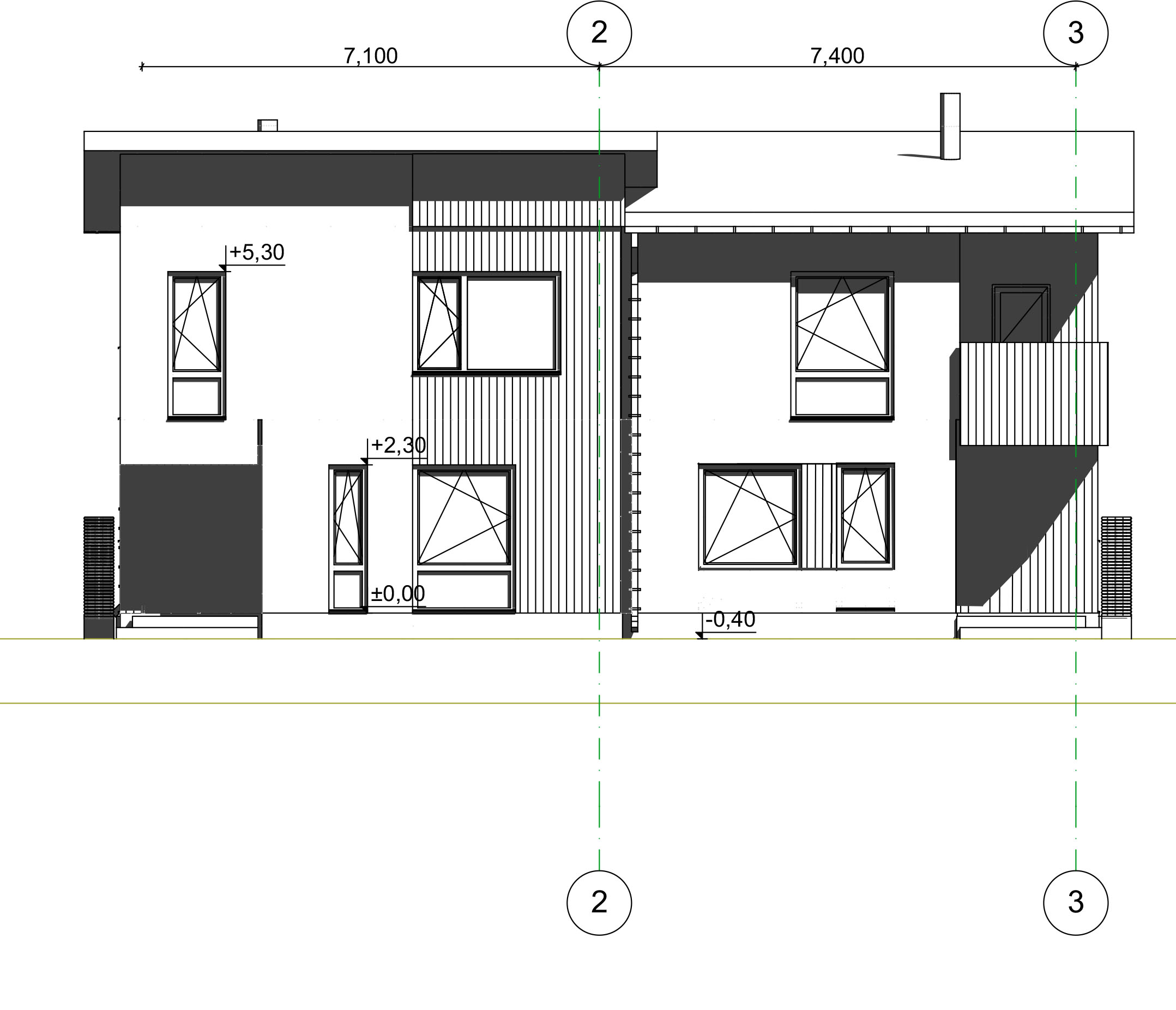 + Alumise korruse planeeritavate akende 6,2 m silluse toestamine vaheposti abil ehk suure akna asendamine kahega.