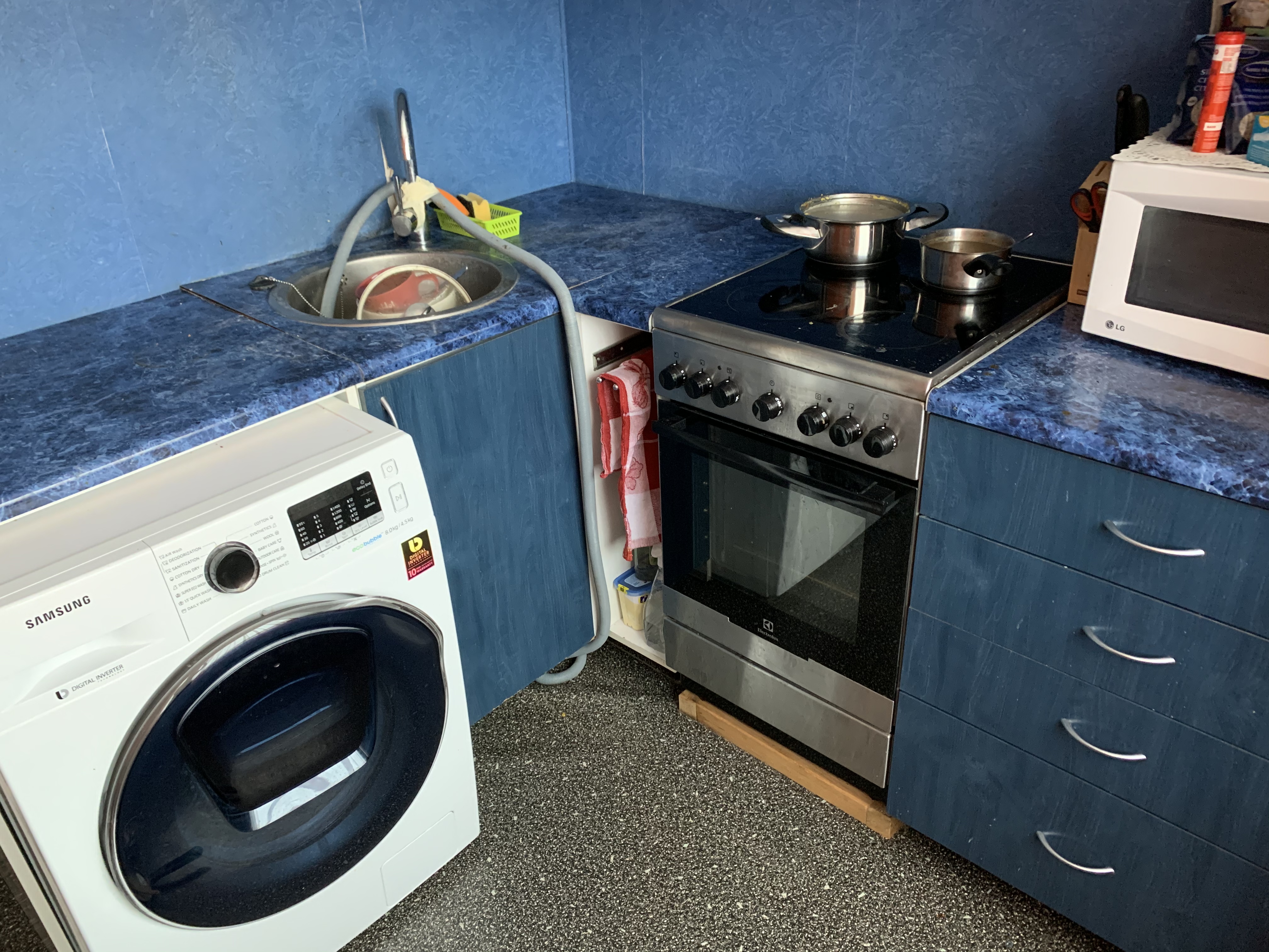 Oleks vaja vahetada köögi töötasapind (vana eemaldada, uus lõigata ja paigaldada), uus köögi tagasein seina paigaldada, vannitoakapp vahetada (vana maha võtta ja uus asemel panna ning valgusti ühendada).