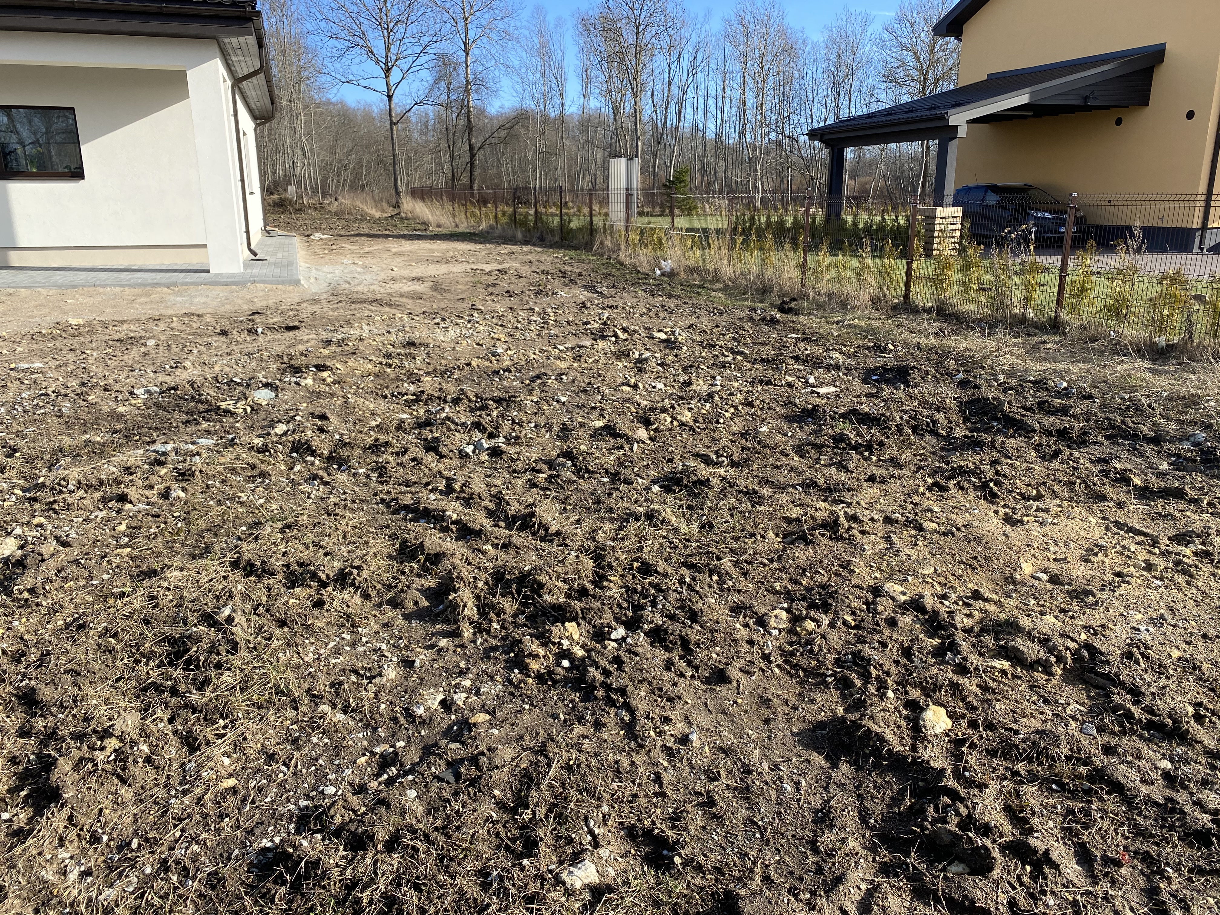 2. Sõelutud muld, transport, vajalik tehnika 2000.00 euri 3. Seeme 120.00 euri Planeerin pinna, puhastan suurematest kividest, paigalda mulla 10cm, rullin, külvan seemne. Tööle garantii, kui sulas siis km ei lisandu. |