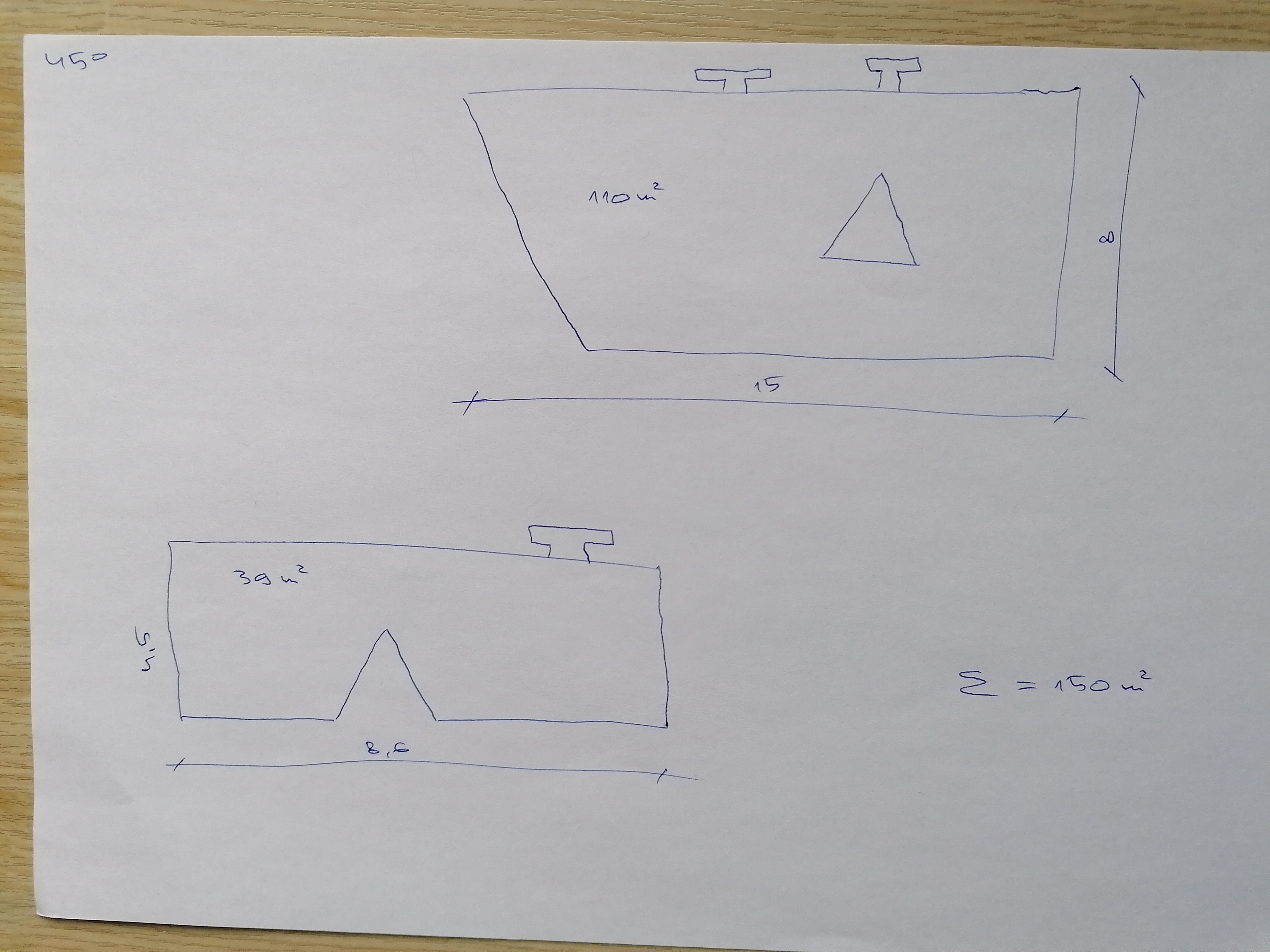Katuse lõunapoolse osa kogupindala on ~150m2 ja selle moodustab hoone kõrgema (suurem) ja madalama (väiksem) osa katuste lõunapooled.
