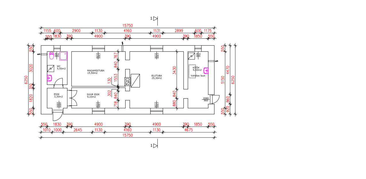 - Põrandatesse paigaldatakse kogu 1. korruse ulatuses põrandaküttetorustik, mis ühendatakse maasoojuspumbaga. Põrandaküttetorustiku paigaldab tellija poolt valitud soojuspumba paigaldaja, kellega pakkuja peab tegema vajalikul määral koostööd (nt kooskõlastama tööde etapid, betoonitööde ajakava vms).