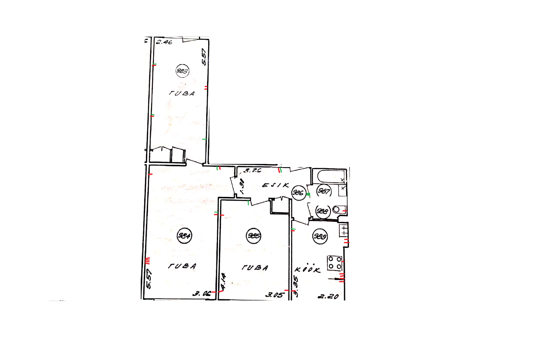 9 korruselise paneelmaja, 3 toalises korteris (59,7m2) on vaja välja vahetada kogu el. juhtmestik.