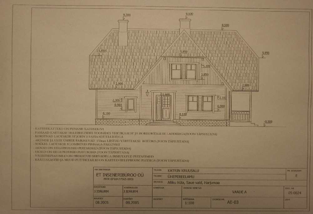 | Ehitusmaterjalid: | Töö tegija poolt |