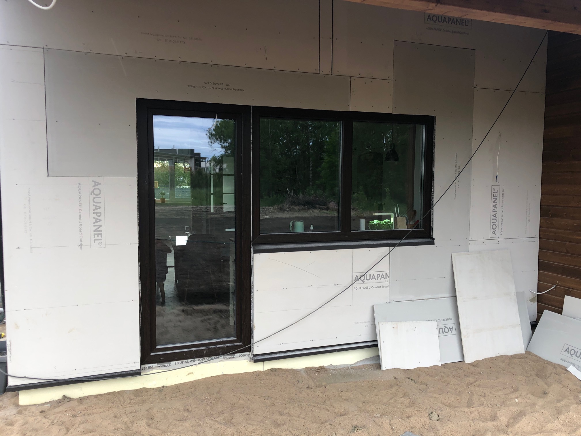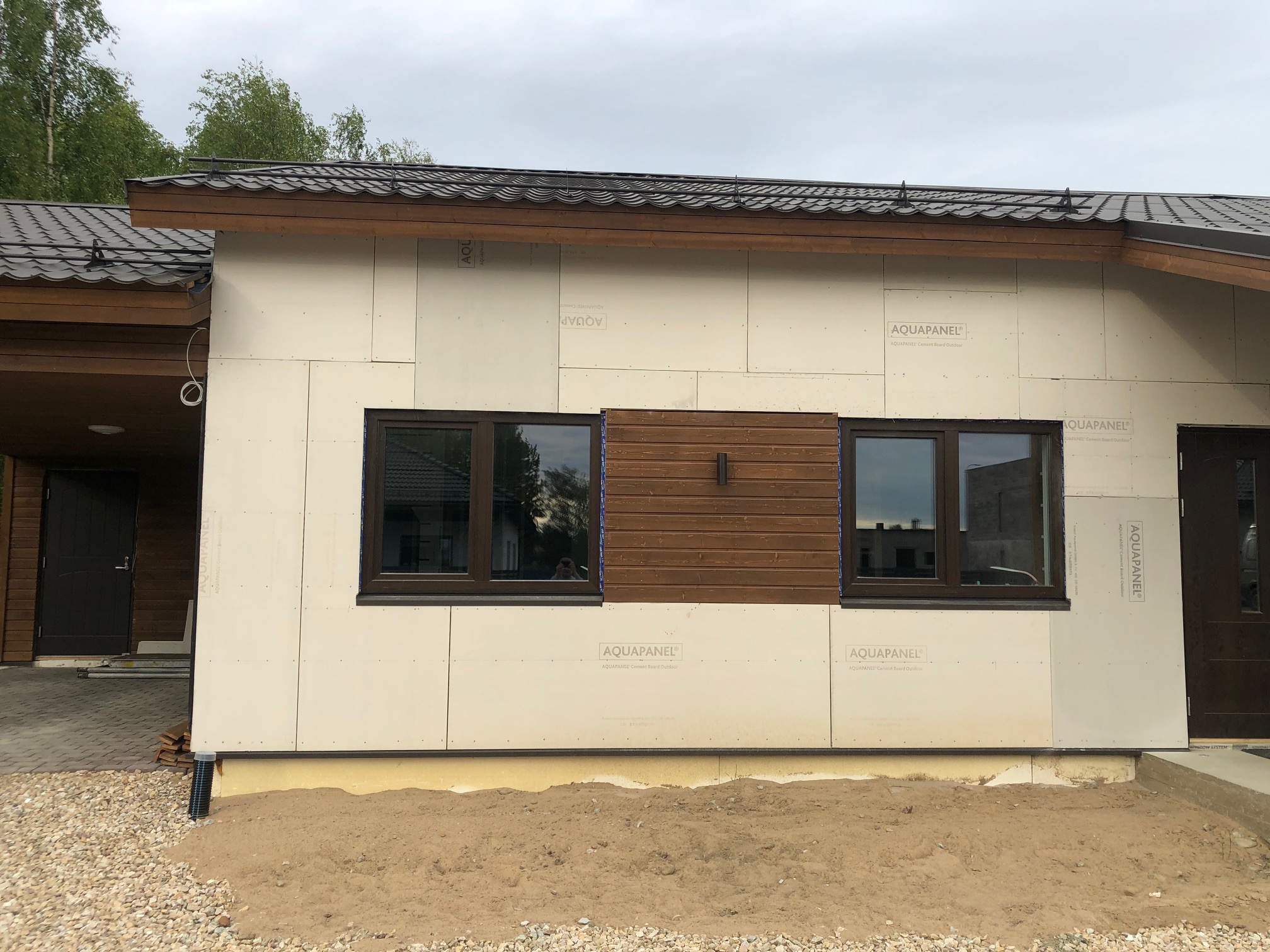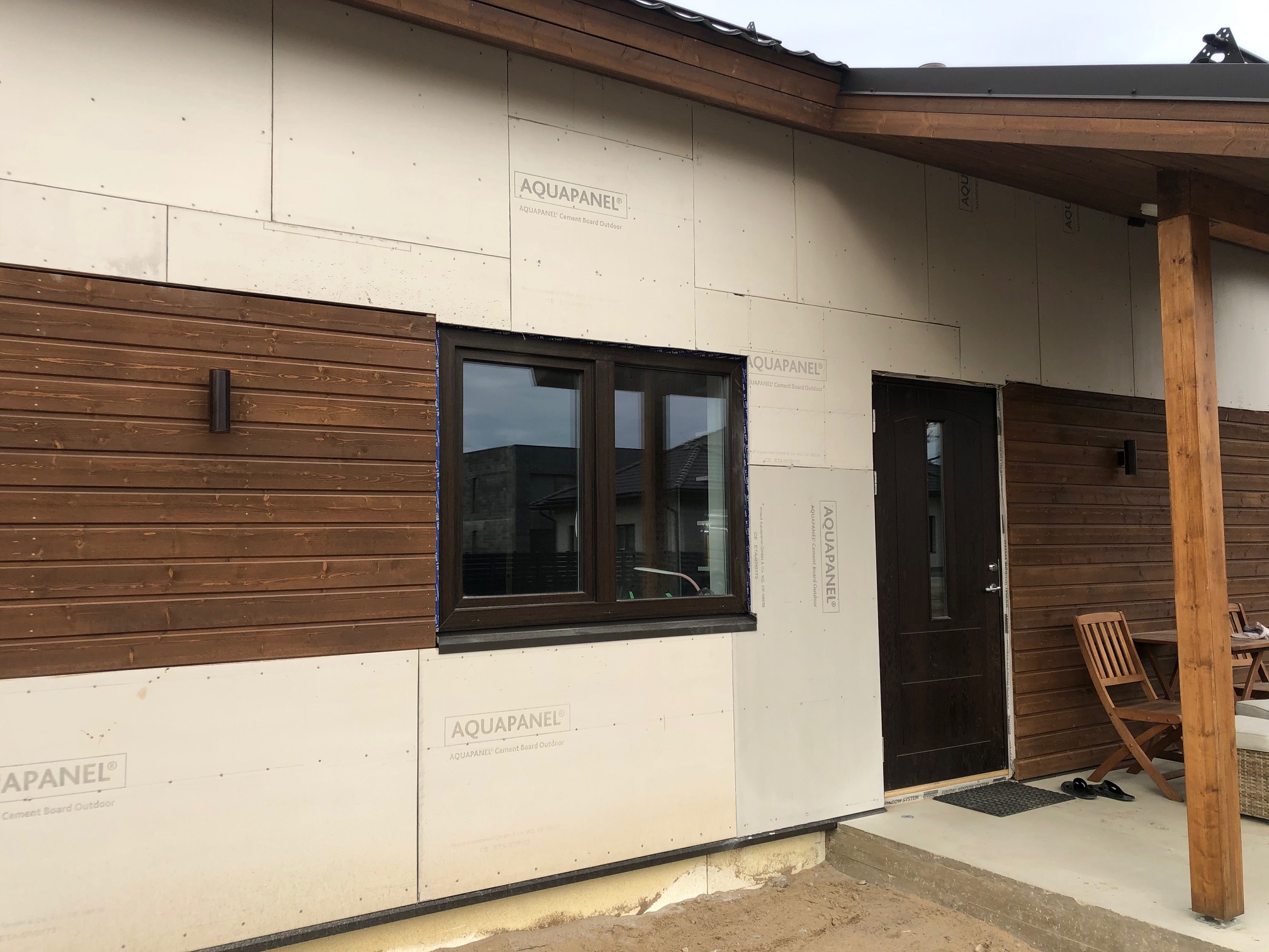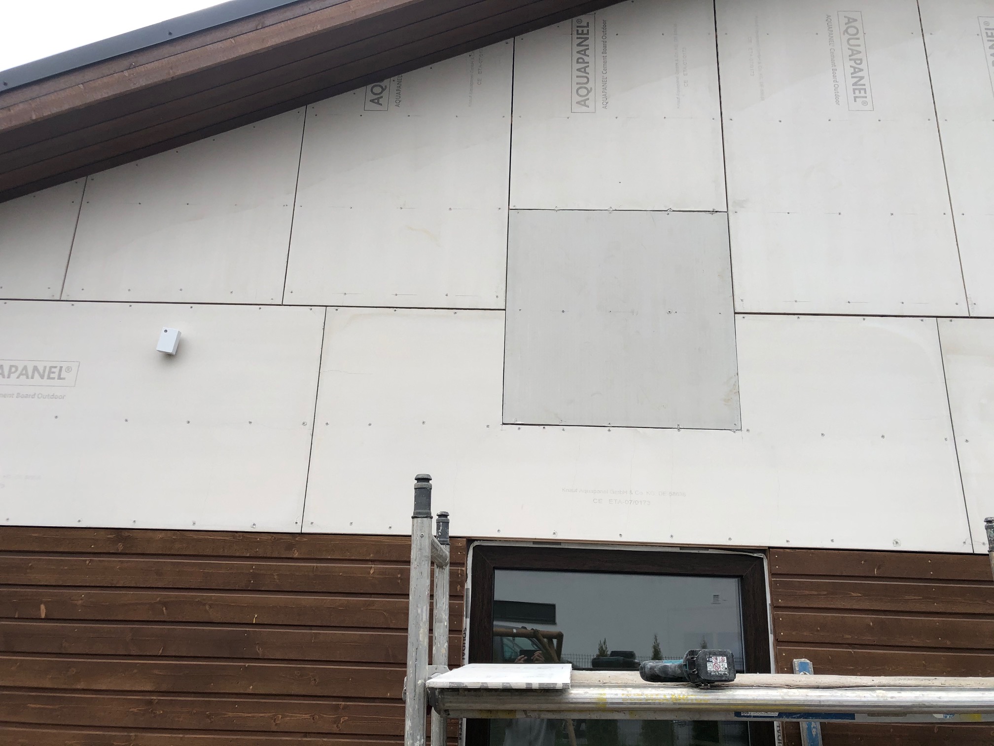 Fassaad kaetud aquapanel plaatidega. Tarvis täita vuugid ja fassaad armeerida.