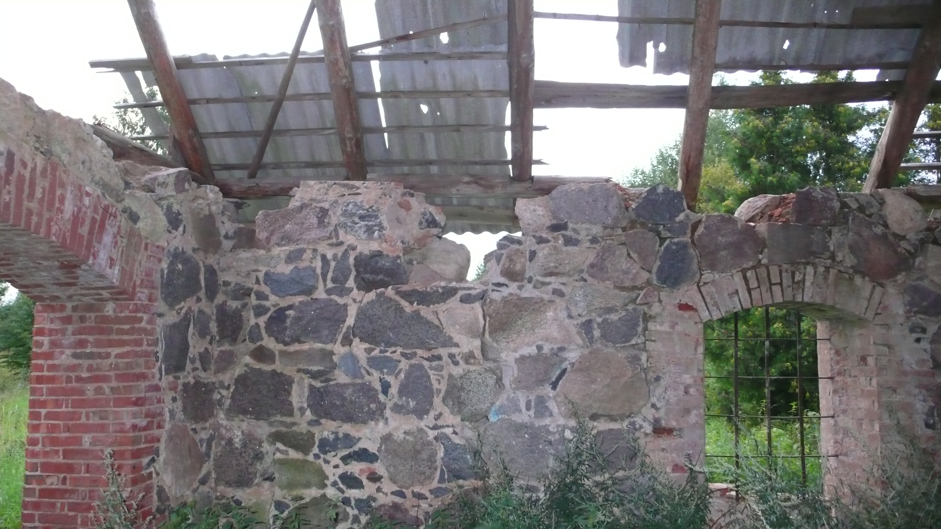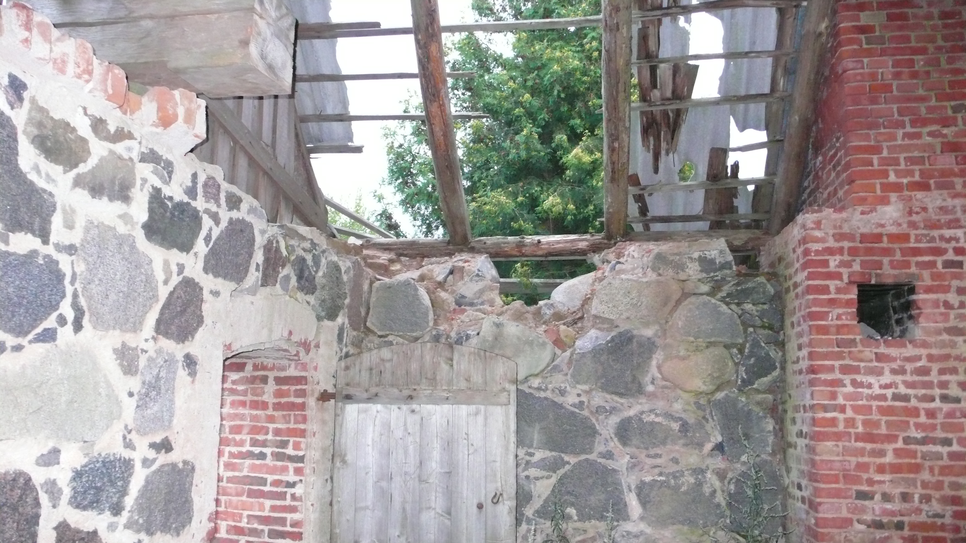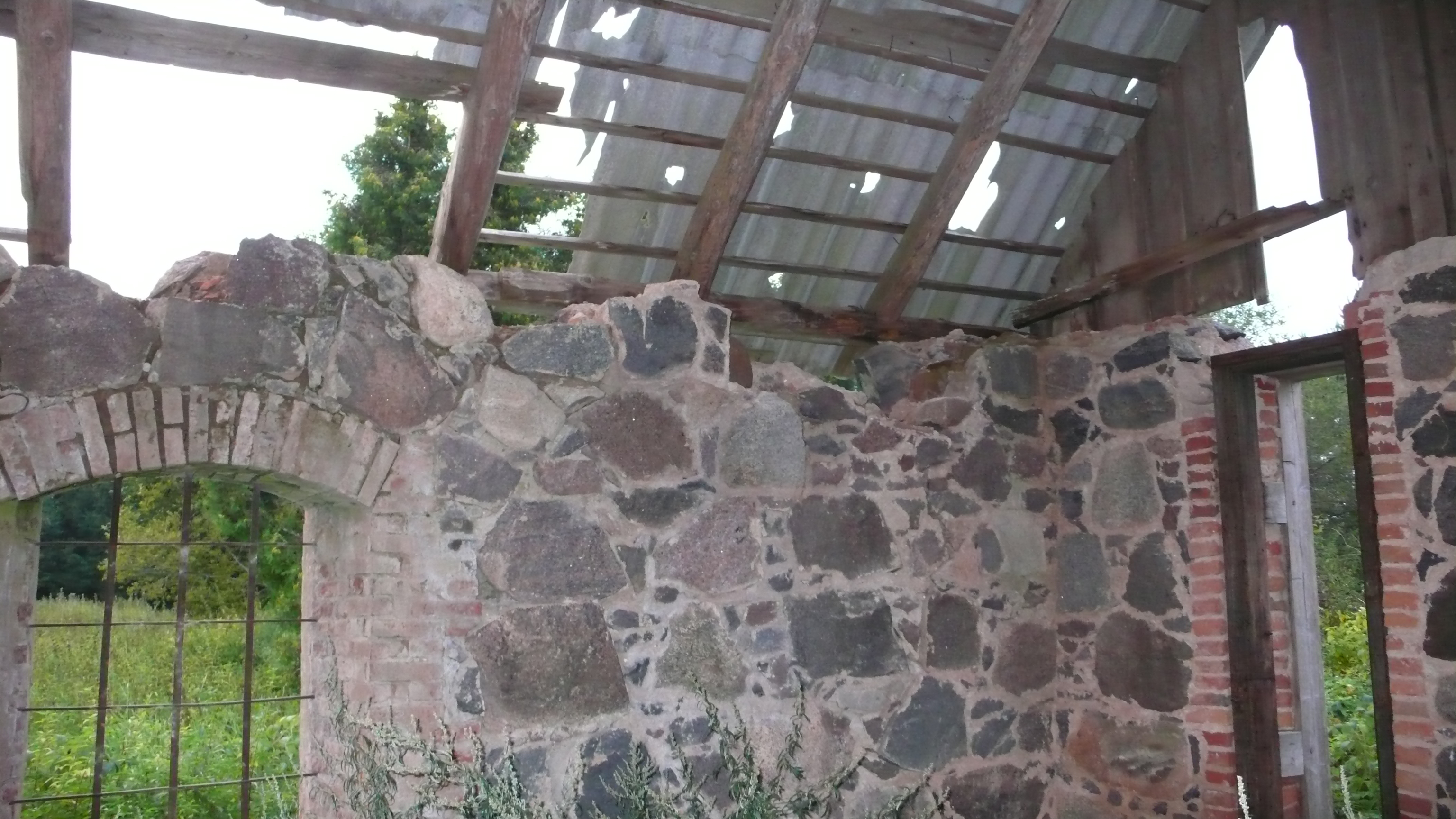 Hoone katus taastad, ilmastik seinu ära ei lagundaks. Hoone mõõdud 9,2m x 6,8m. Katuse pind on 9,8mx5.2mx2-korstna auk = 100m2. Sarikad korras, ainult kolmel on ülemine tugi puudu. Müür pealt taastada ja panna uus müürilatt.