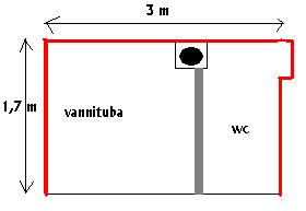 Vannitoa seinad, mis punasega joonistatud sirgeks teha (krohvida).