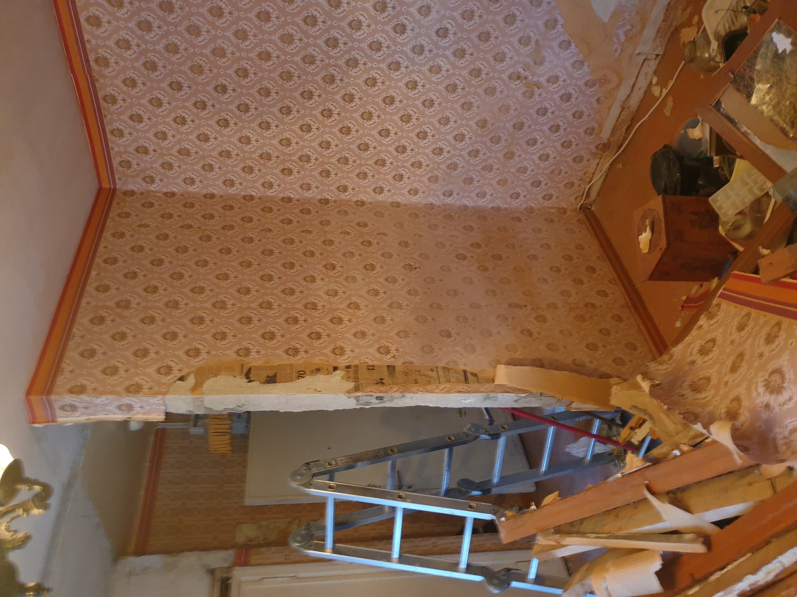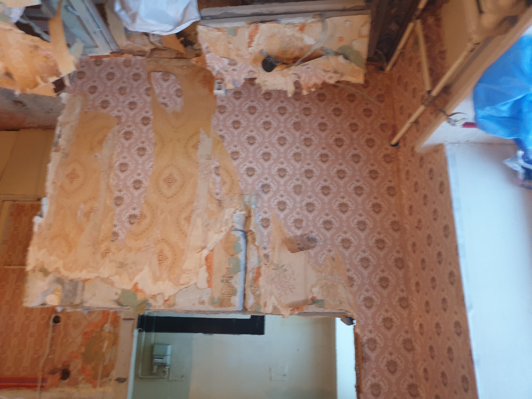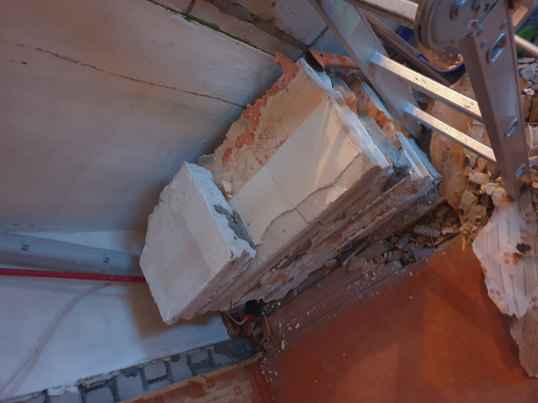 kokku ca 4m x 2,7m suurusest seinast tuhaplokid ca 60cmx40cmx10cm on ka väiksemad tükid ning krohv seinast (piltidel veel osaliselt seinas aga saab maha võetud)