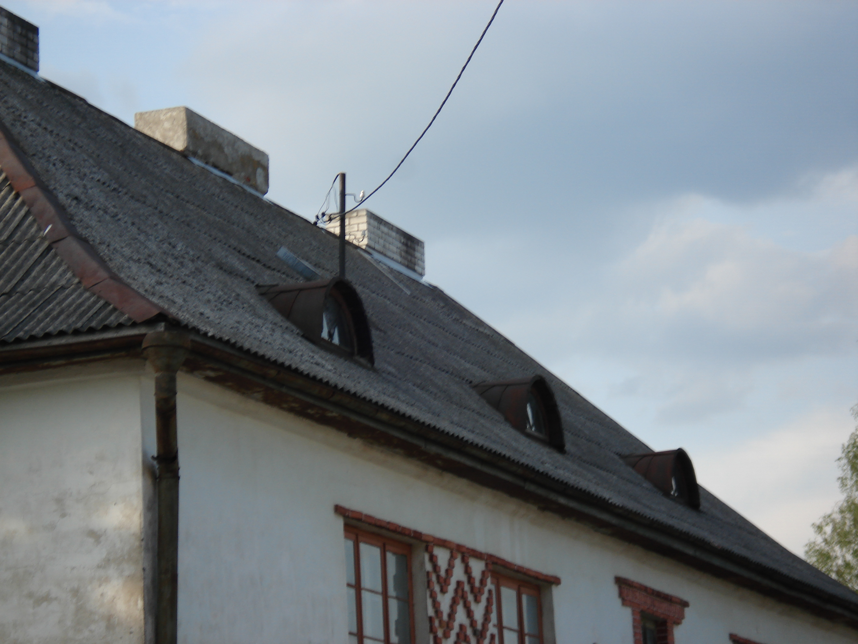Kahekordne 8 korteriga maja. Katuse pind ~ 360 m². Katuse kalle 45°, alumises osas ~38°.