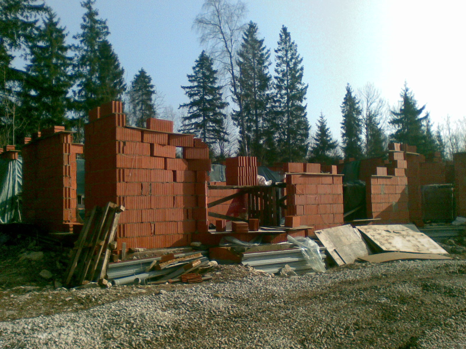 ühekordne kivimaja- valmis vundament ja pooled seinad.