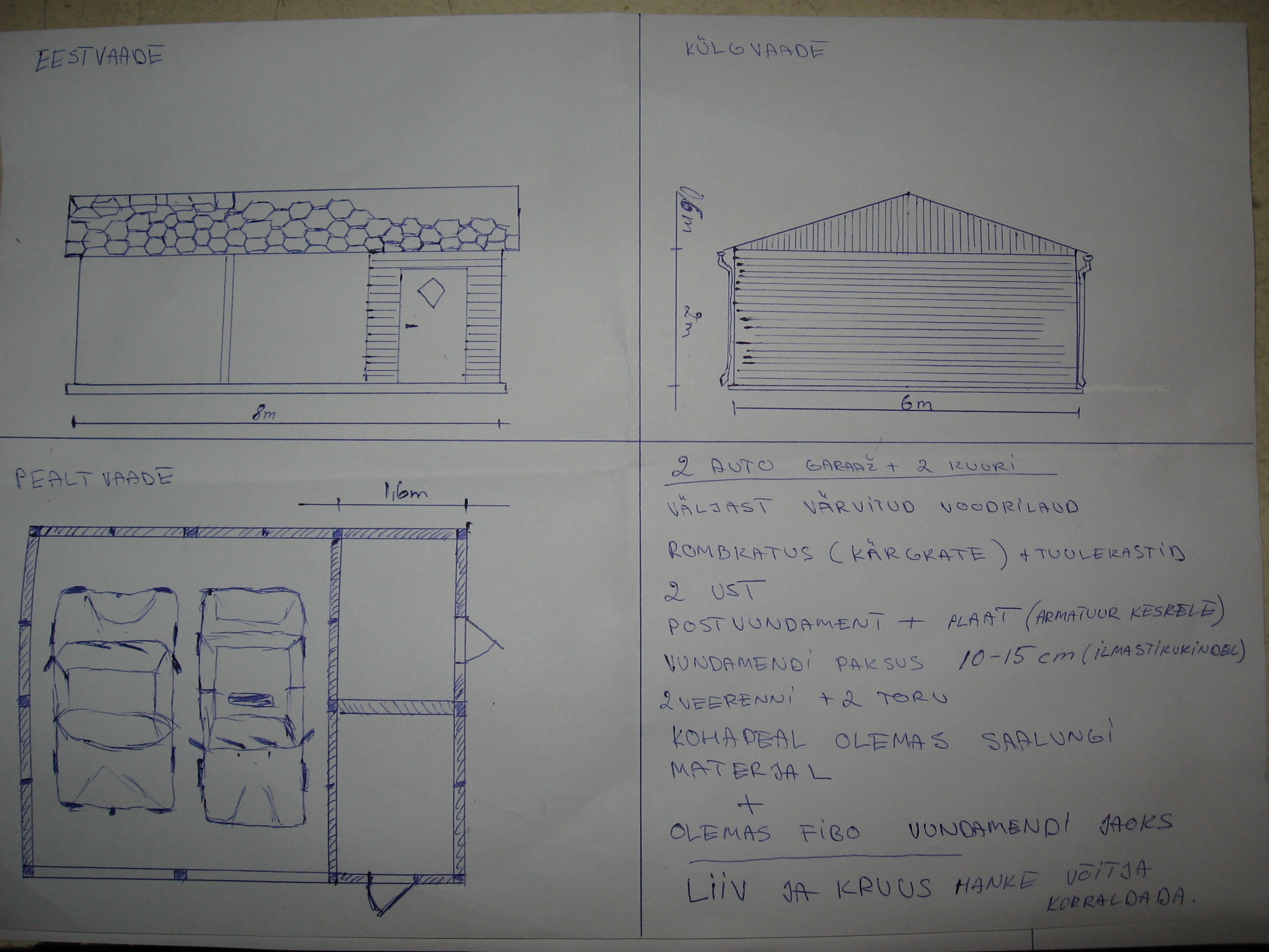 Ehitada varjualune 2 autole + 2 kuuri. (8x6)