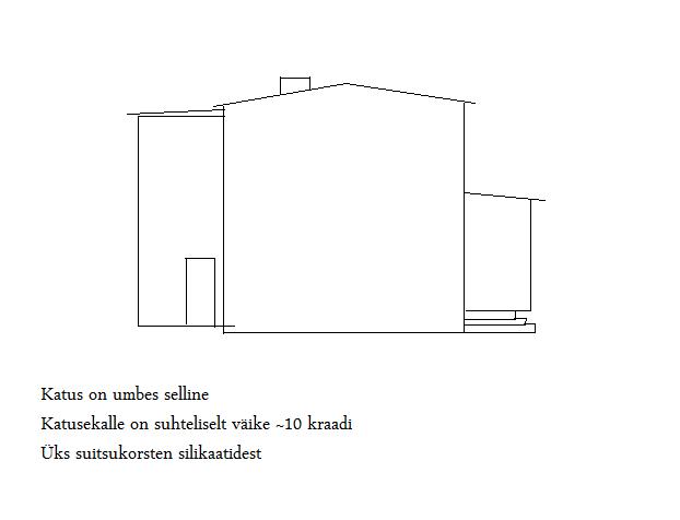 Vana puumaja nõmmel (~1950a.), 2-korruseline, vaja oleks vahetada olemasolevat 120m2 eterniitkatust (vana materjali viime ise ära), mõned halvad sarikad võib välja vahetada ja vajadusel roovitust vahetada/lisada. Uus katus oleks plekist (ca 120-130.- eek /m2 eest, kui vaja, siis on olemas selline pakkumine firmalt). Oleks vaja tuulekastid ka uued teha.