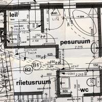 Eramaja I korrus ca 70m2: lagi, seinad gyproci paigaldus, osaliselt põrandaplaadi paigaldus, WC plaatimine.