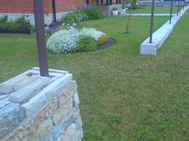 Aiapostide ladumine looduslikust dolomiidist kividega - eri suurusega kivid, kokku 11 posti, ca 1,5m kõrge, vundament ja metallpostid on paigas, kivid olemas.