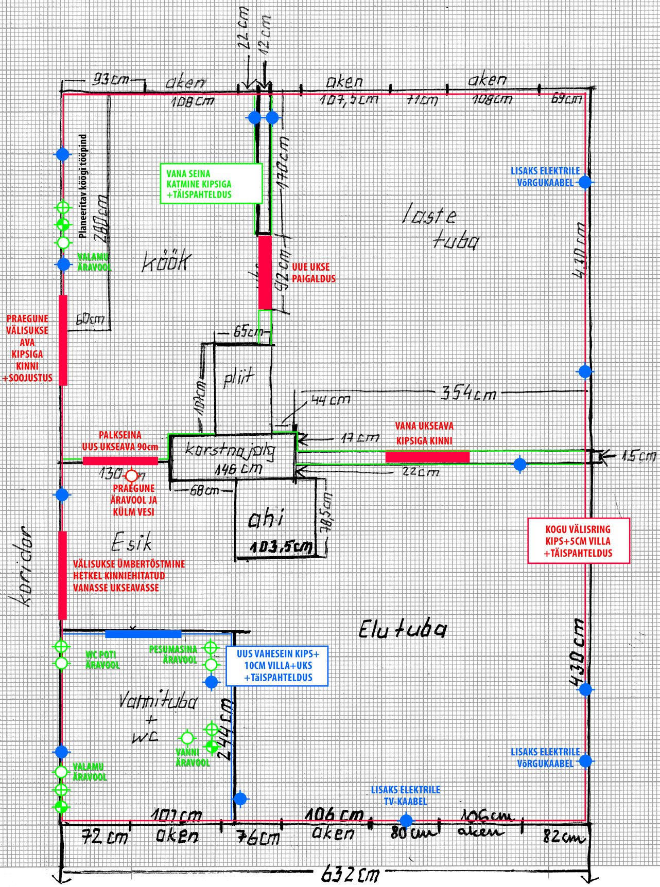 Kogu korteris vaja teostada järgnevad tööd: