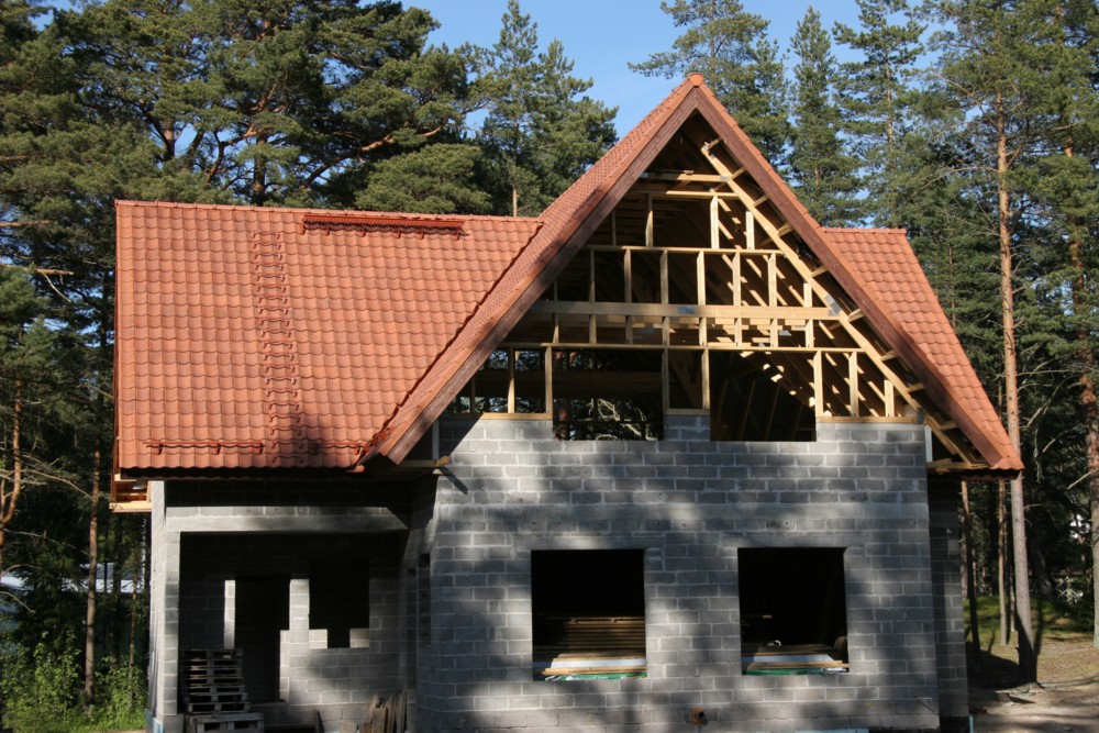 fibo ja karkass seina katmine plaatvilla, tuuletõkkeplaadi ja eeltöödeldud voodrilauaga. Maja välisseinte pindala on 300 m2.