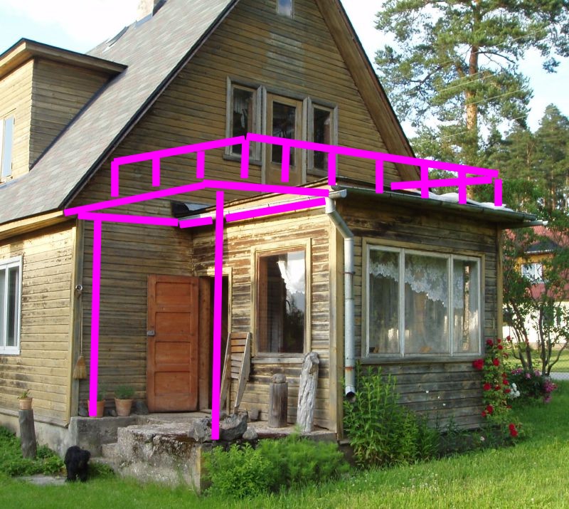 Elvas asuva puitmaja verandal tuleb eemaldada vana katus (3mx3,5m, laud+bituumen) ja ehitada uus (5mx3,5m, ühest otsast toestada kahe postiga, kuhu moodustub varjualune). Veranda katusele rajada piiretega rõdu. Ülejäänud majakatus on hall bituumensindel.