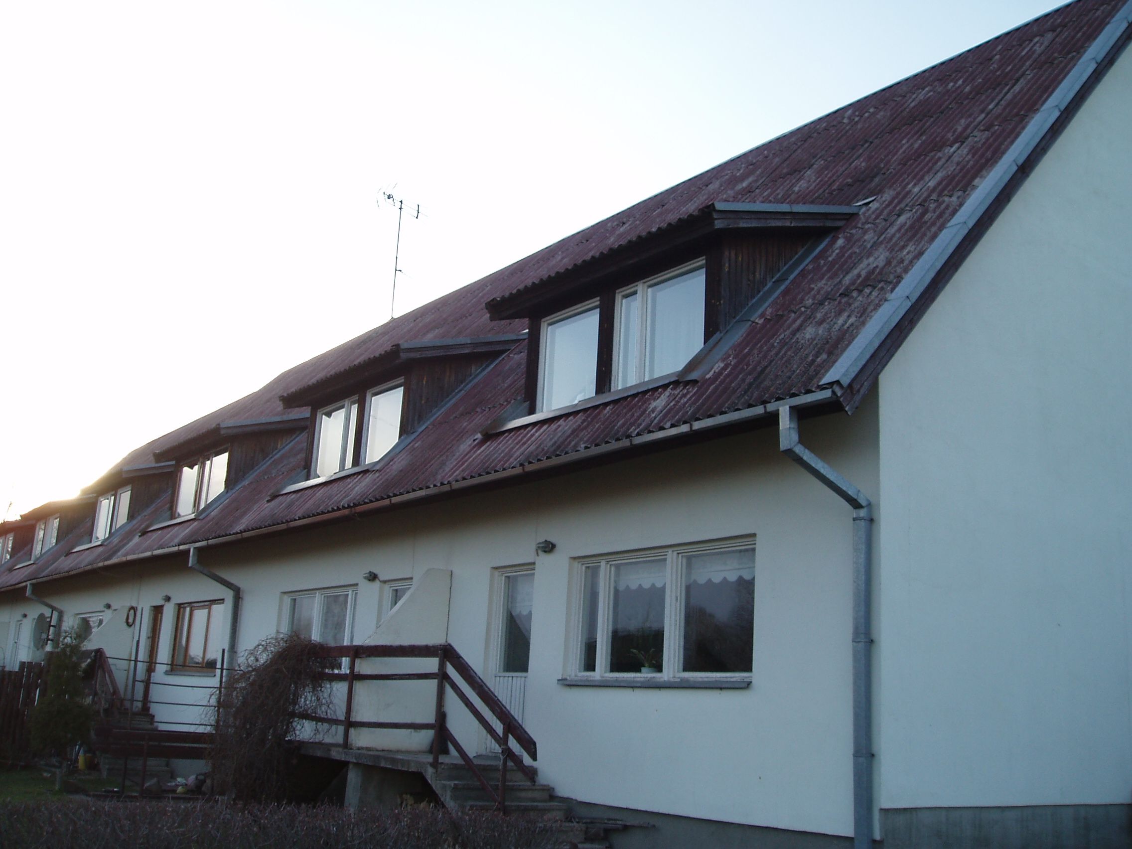 6-korteriga ridaelamu eterniitkatuse vahetus (750m2), korstnade ladumine, vihmaveesüsteemi vahetus.